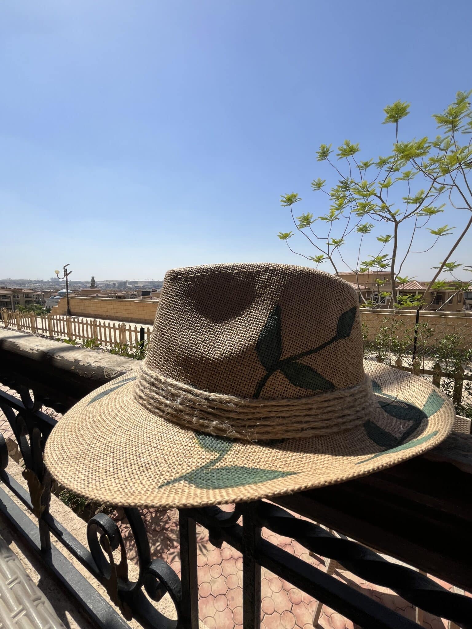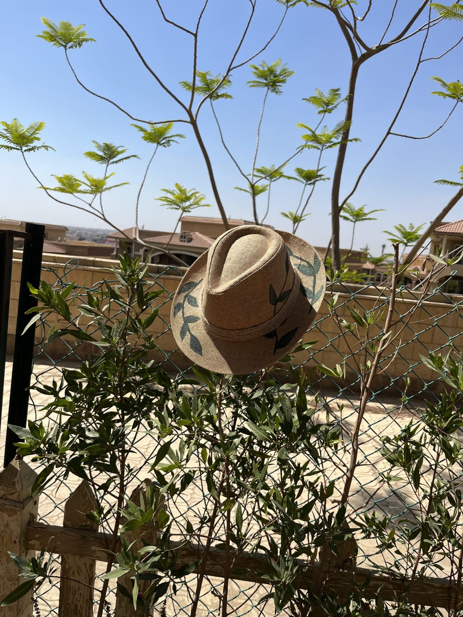 Hand painted tree leaves summer hat
