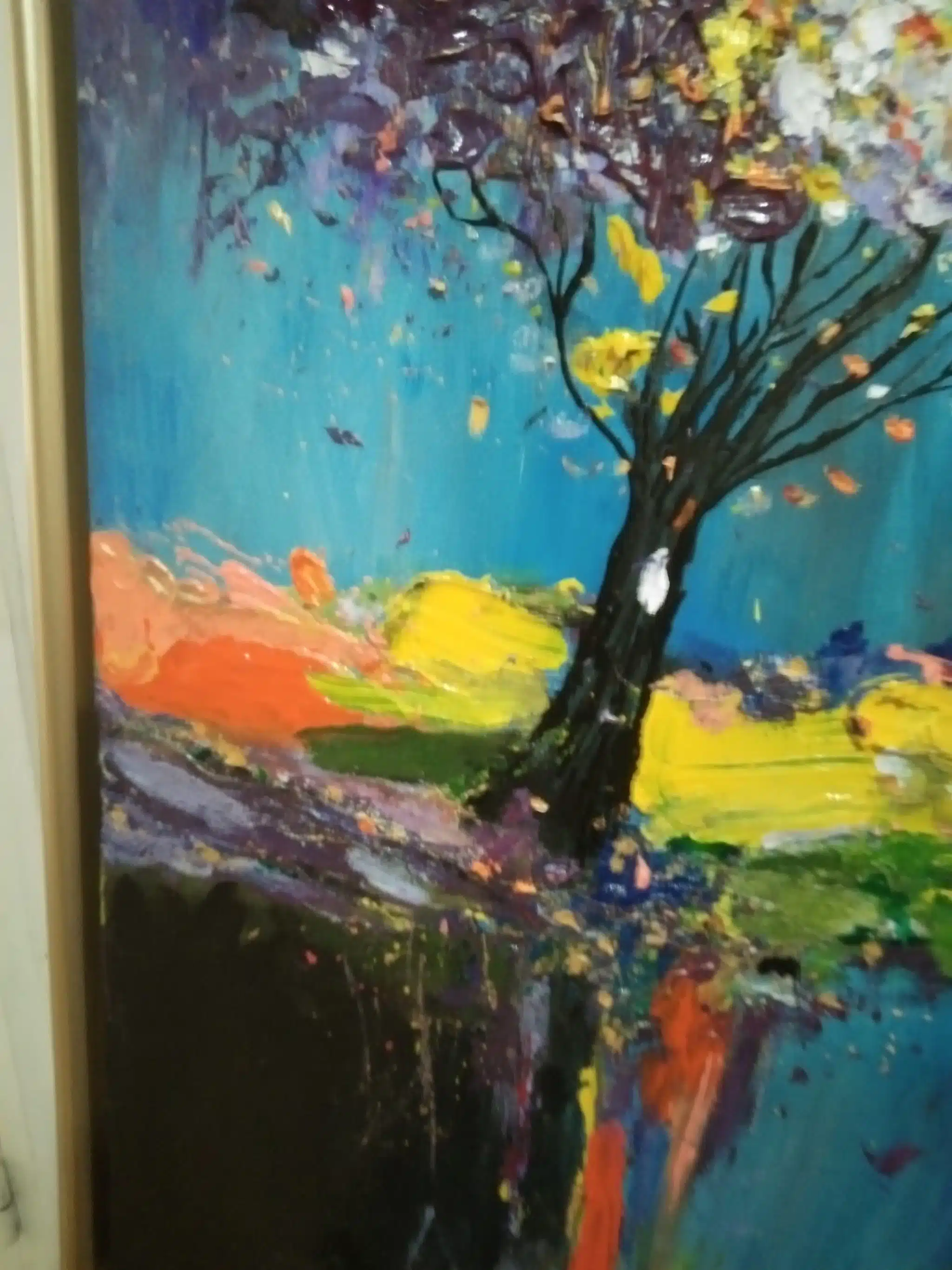 Texture acrylic painting , 100 x 70 cm with wooden frame.