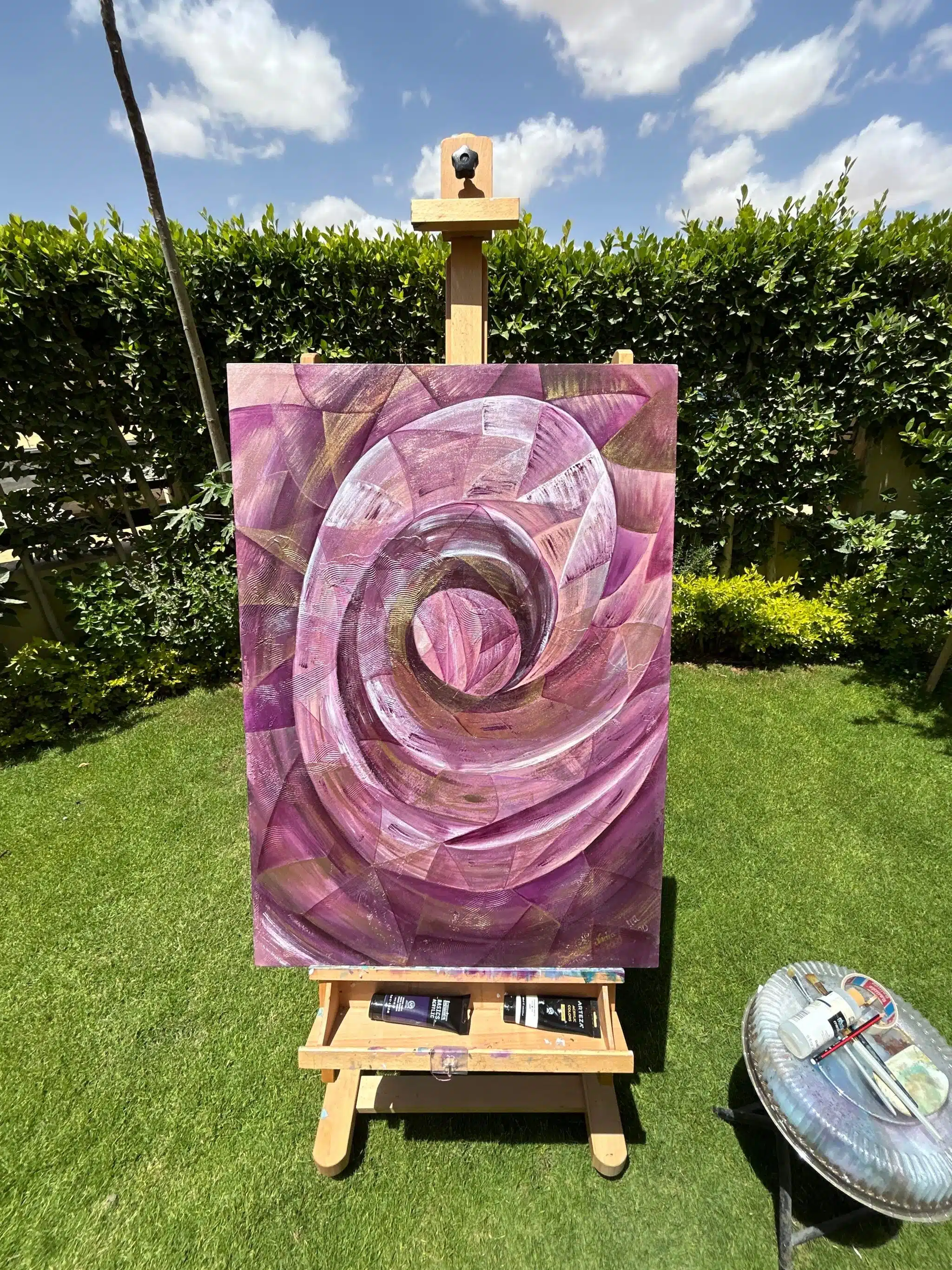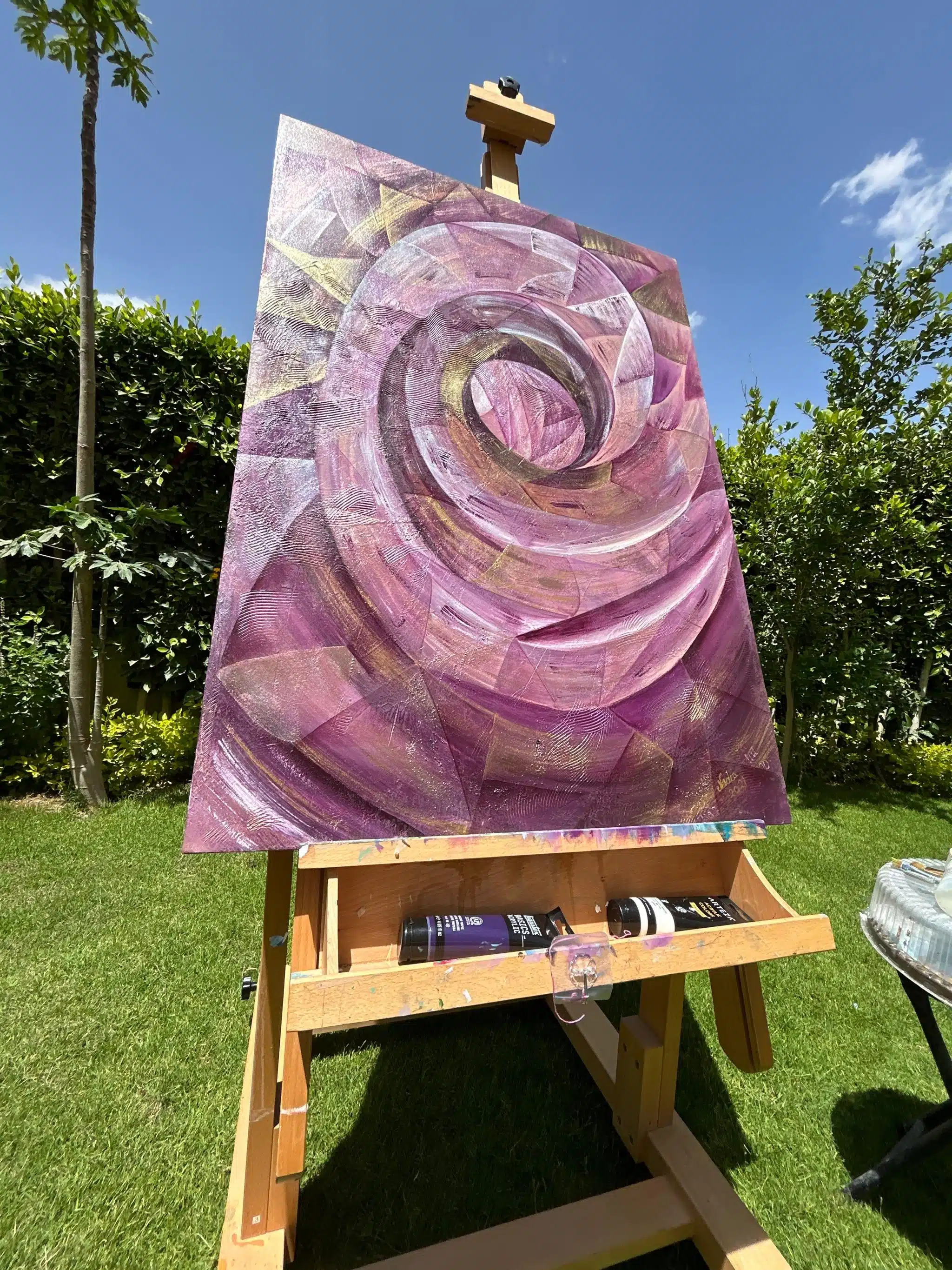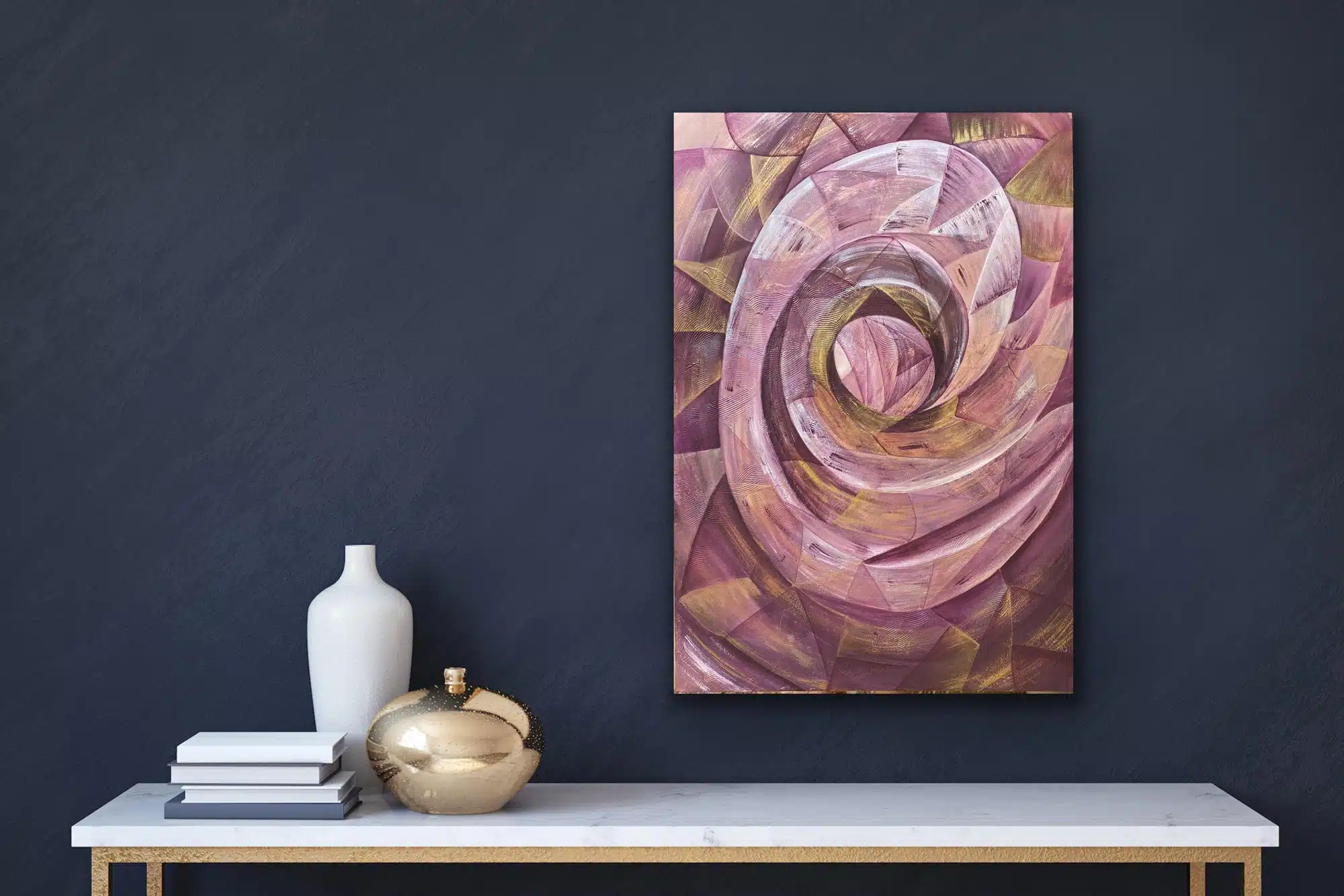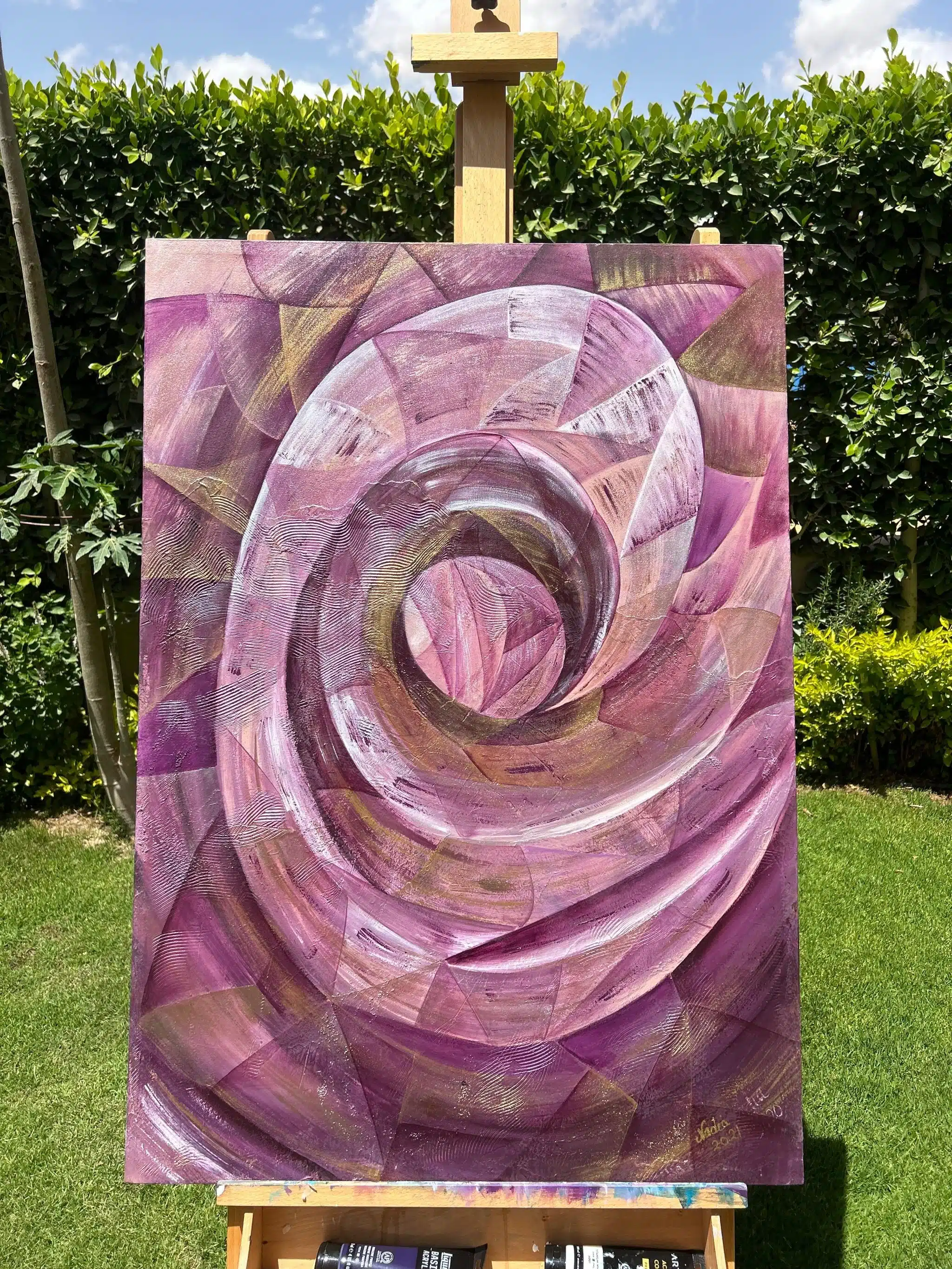 Acrylic/mixed media on canvas with metallic colors