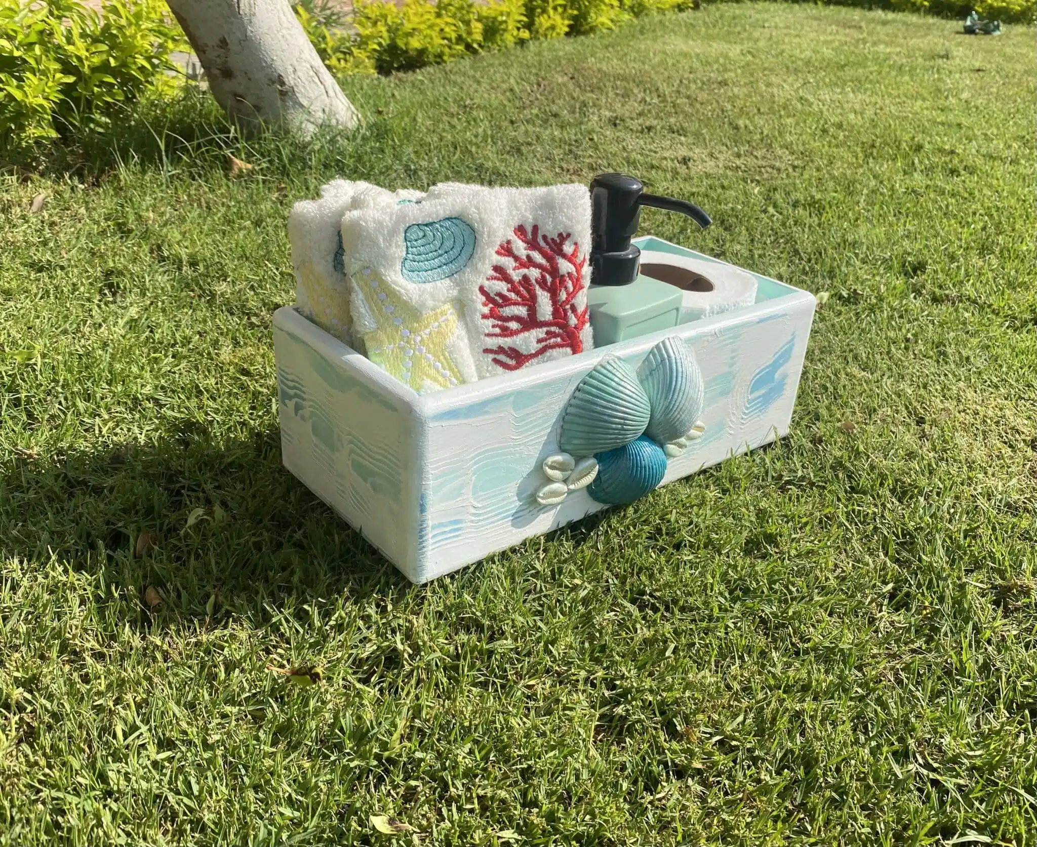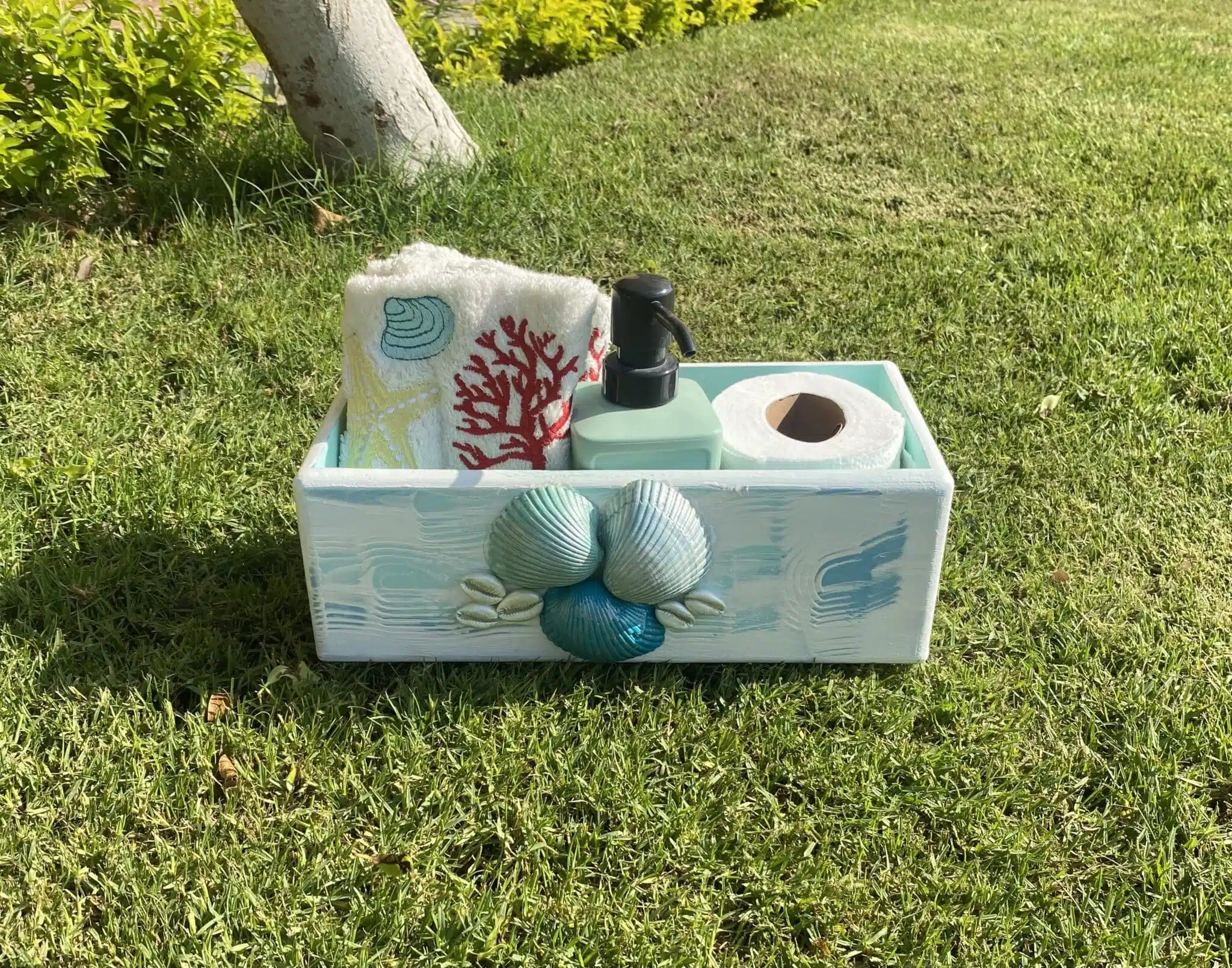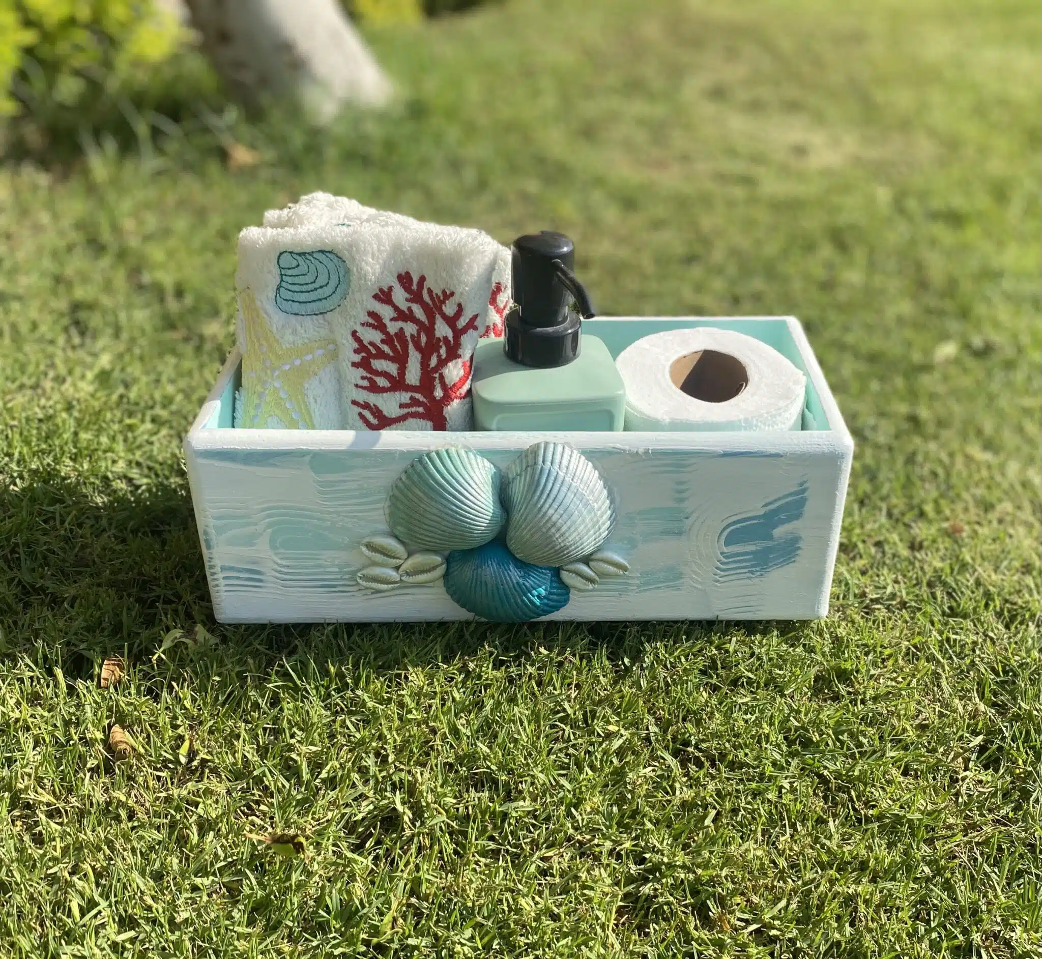 Be the first to review “Turquoise Mint Sea Shell Towel Box”
