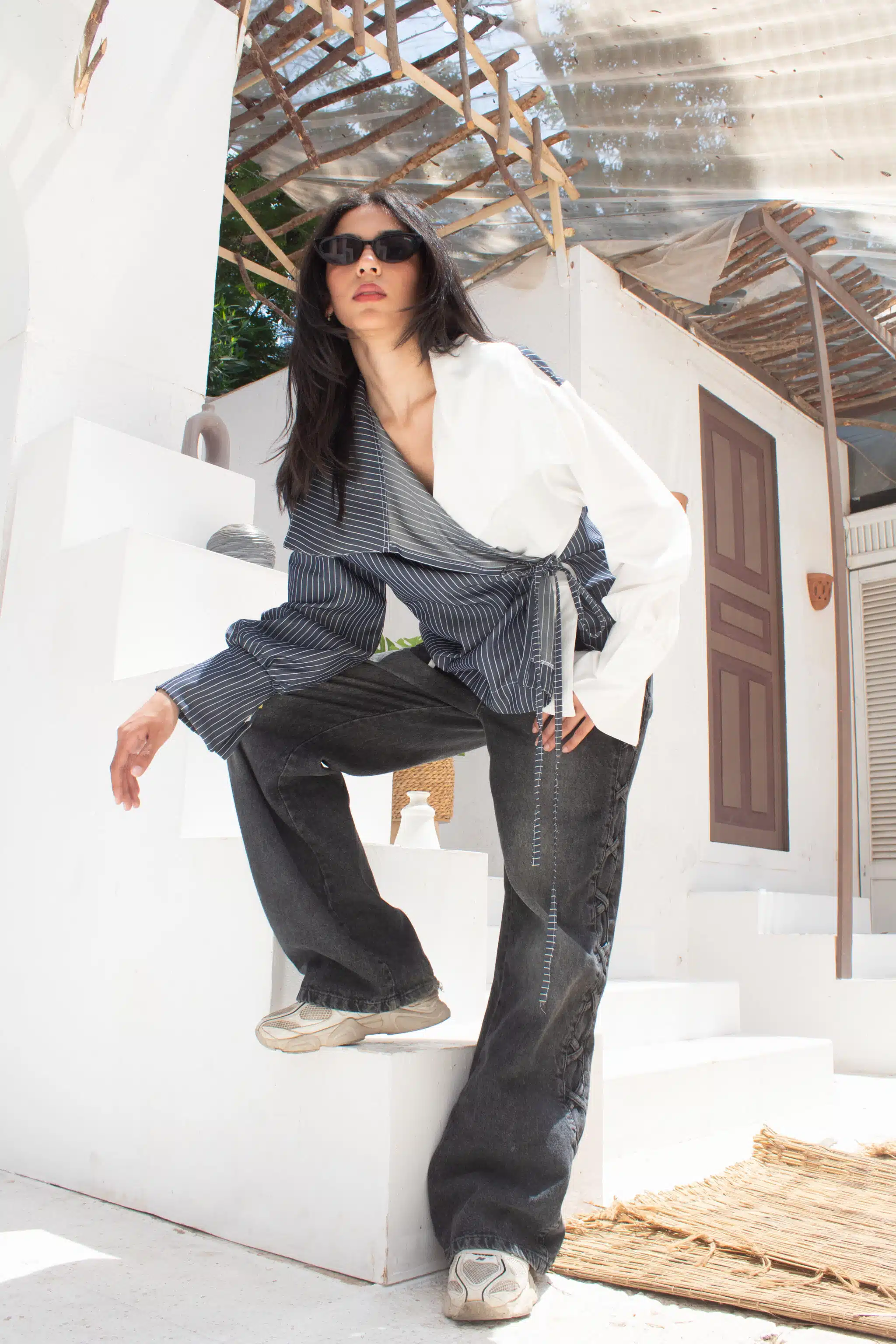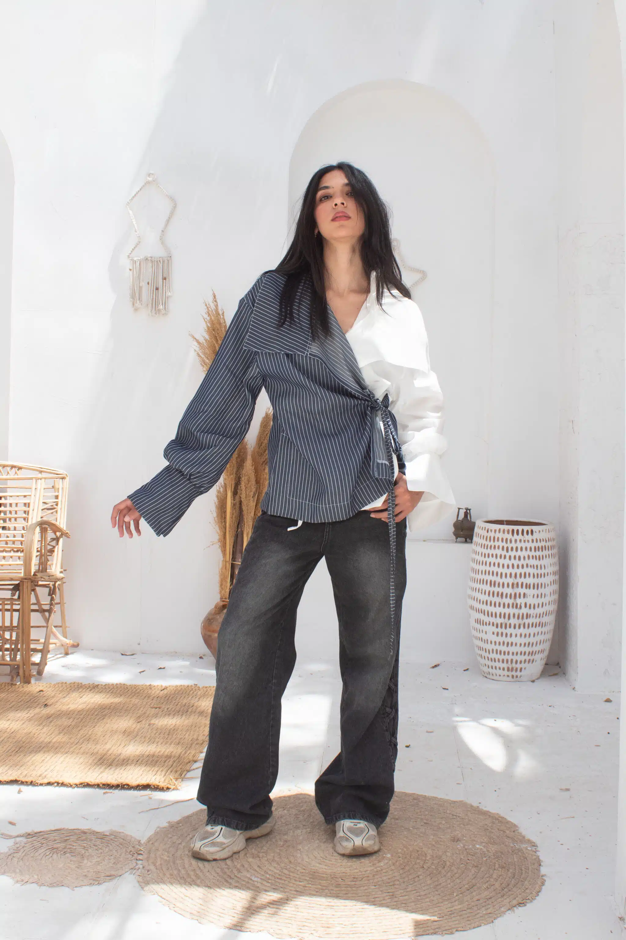 Wrapped oversize chemise you can wear it at two ways , the white face or at the blue ray face