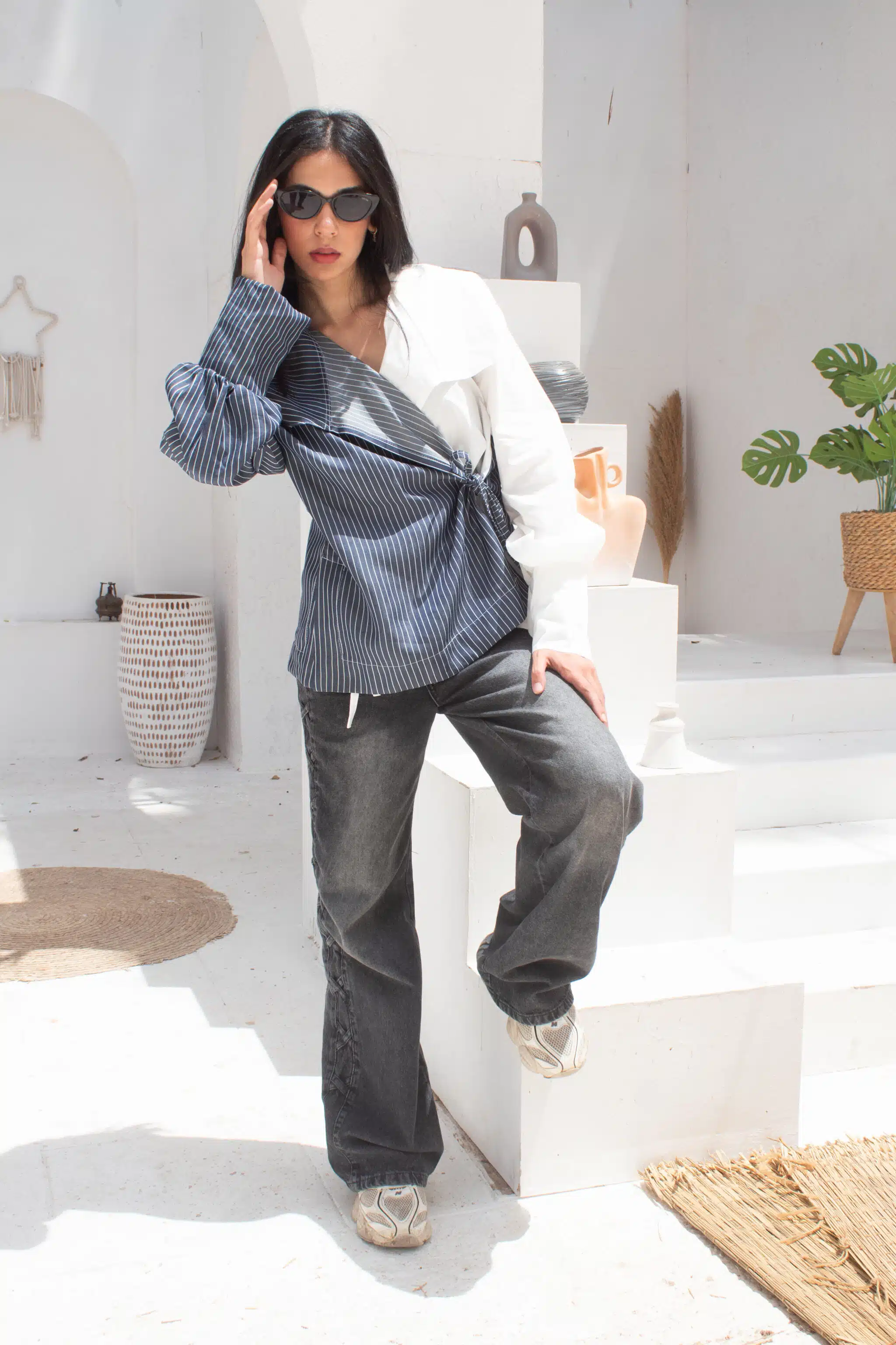شيميز اوفر سايز يمكن ان يلبس بطريقتين
