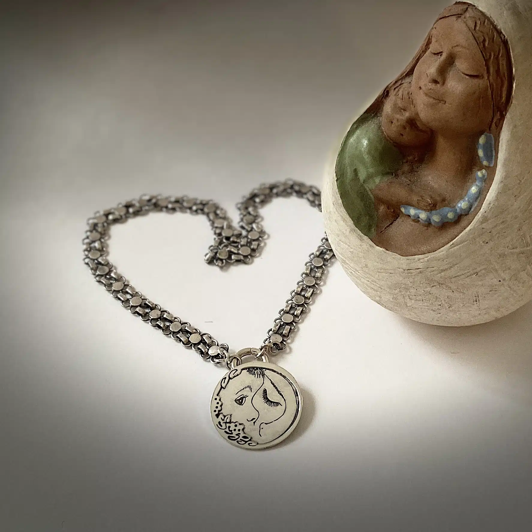 Sterling silver 925 pendant featuring a baby and his mother’s face