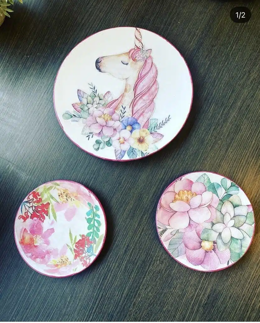 Unicorn Theme Set of Plates perfect for girls room