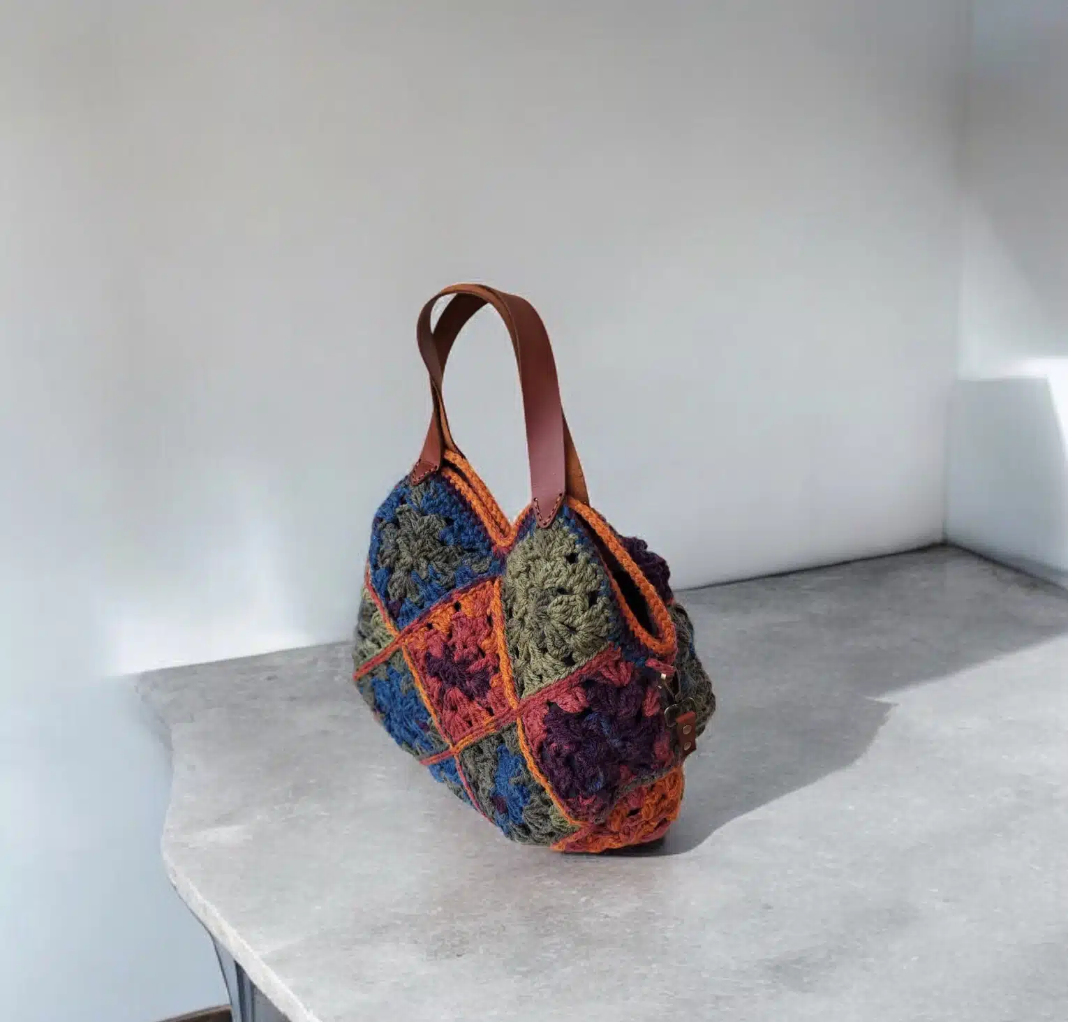 Trendy handmade crochet bag made of high quality of Turkish yarn ,made in squares