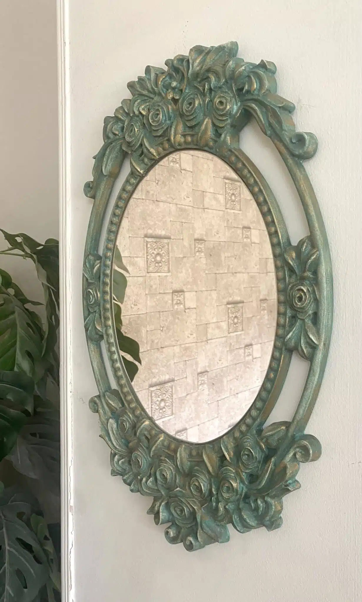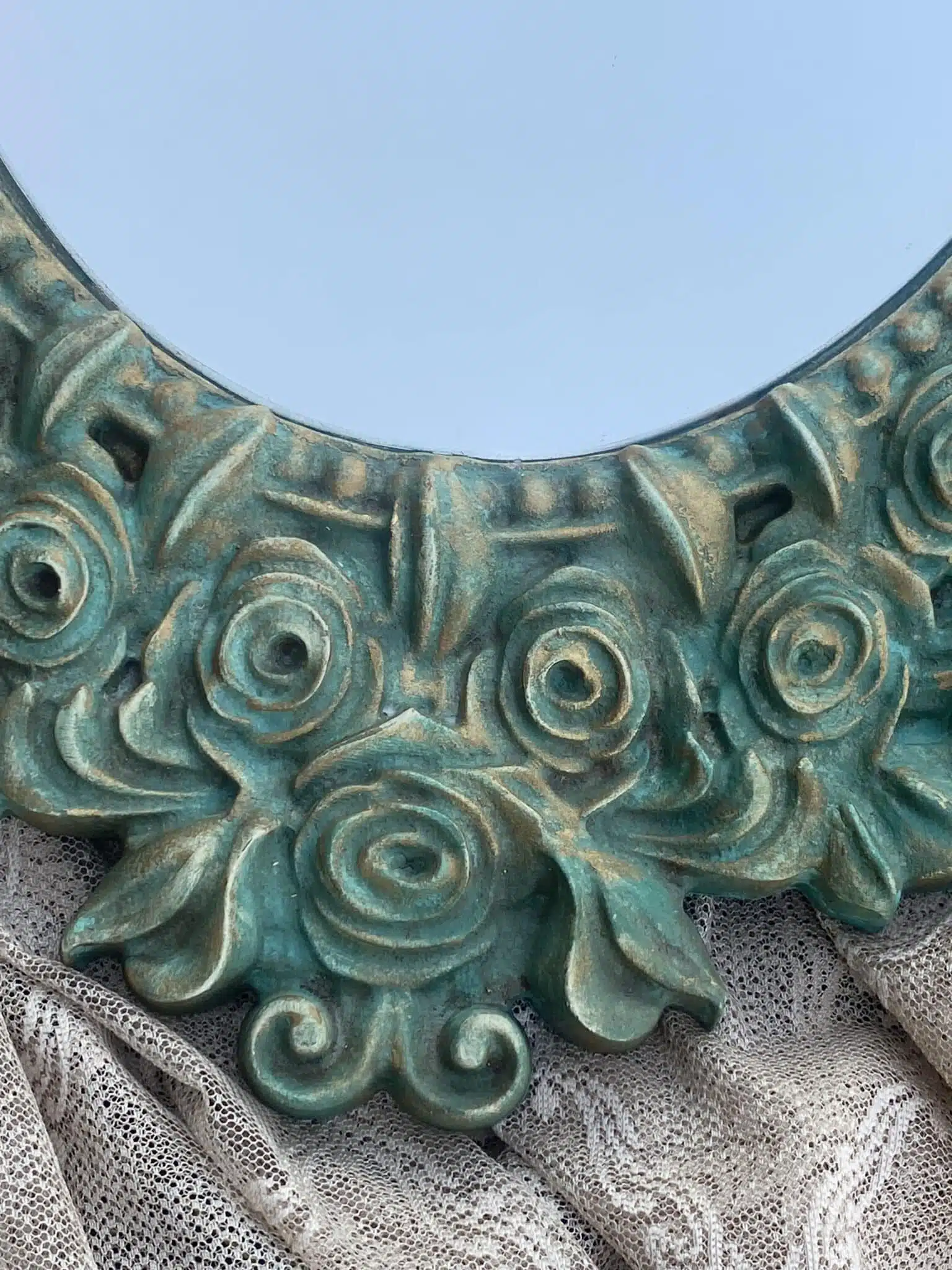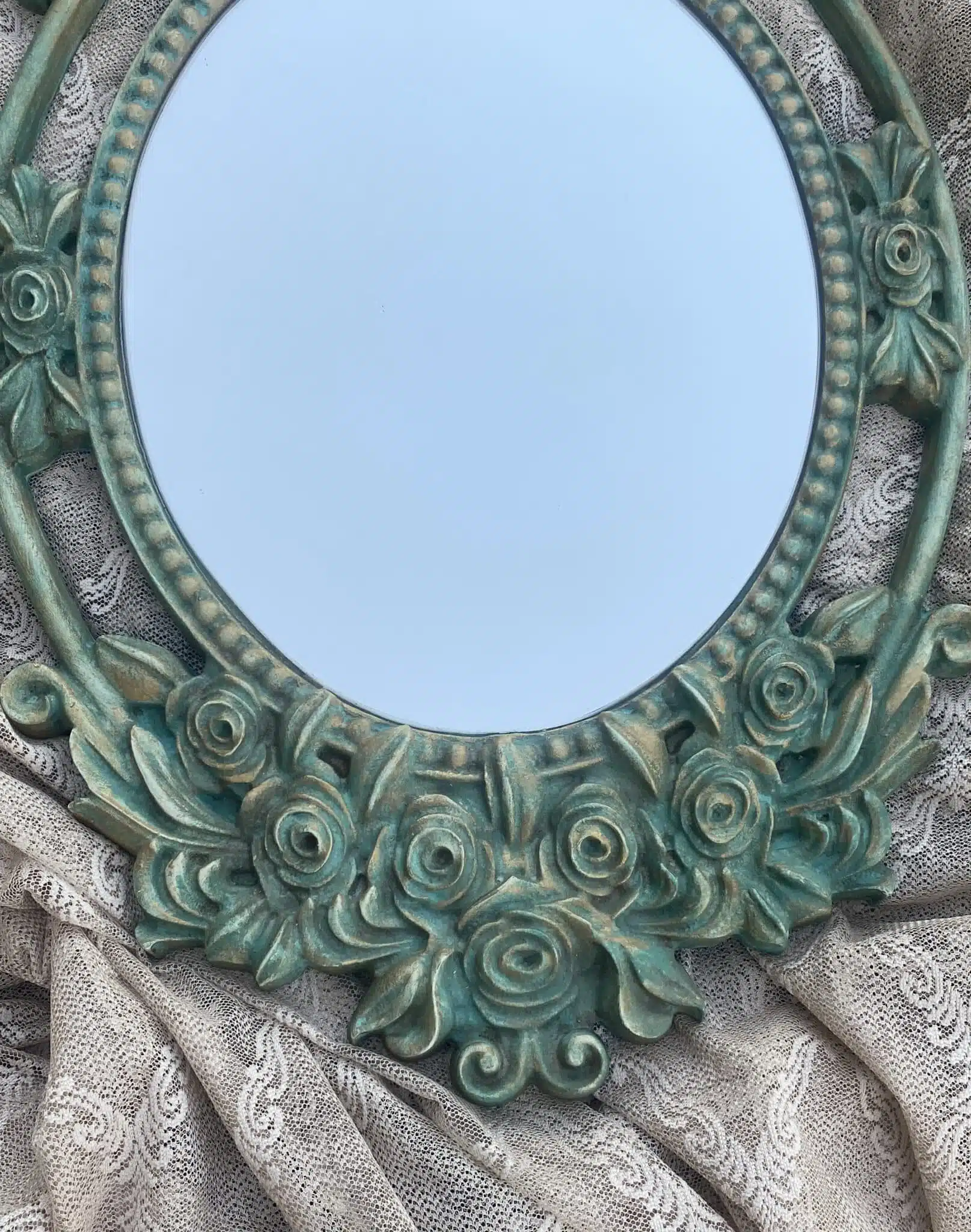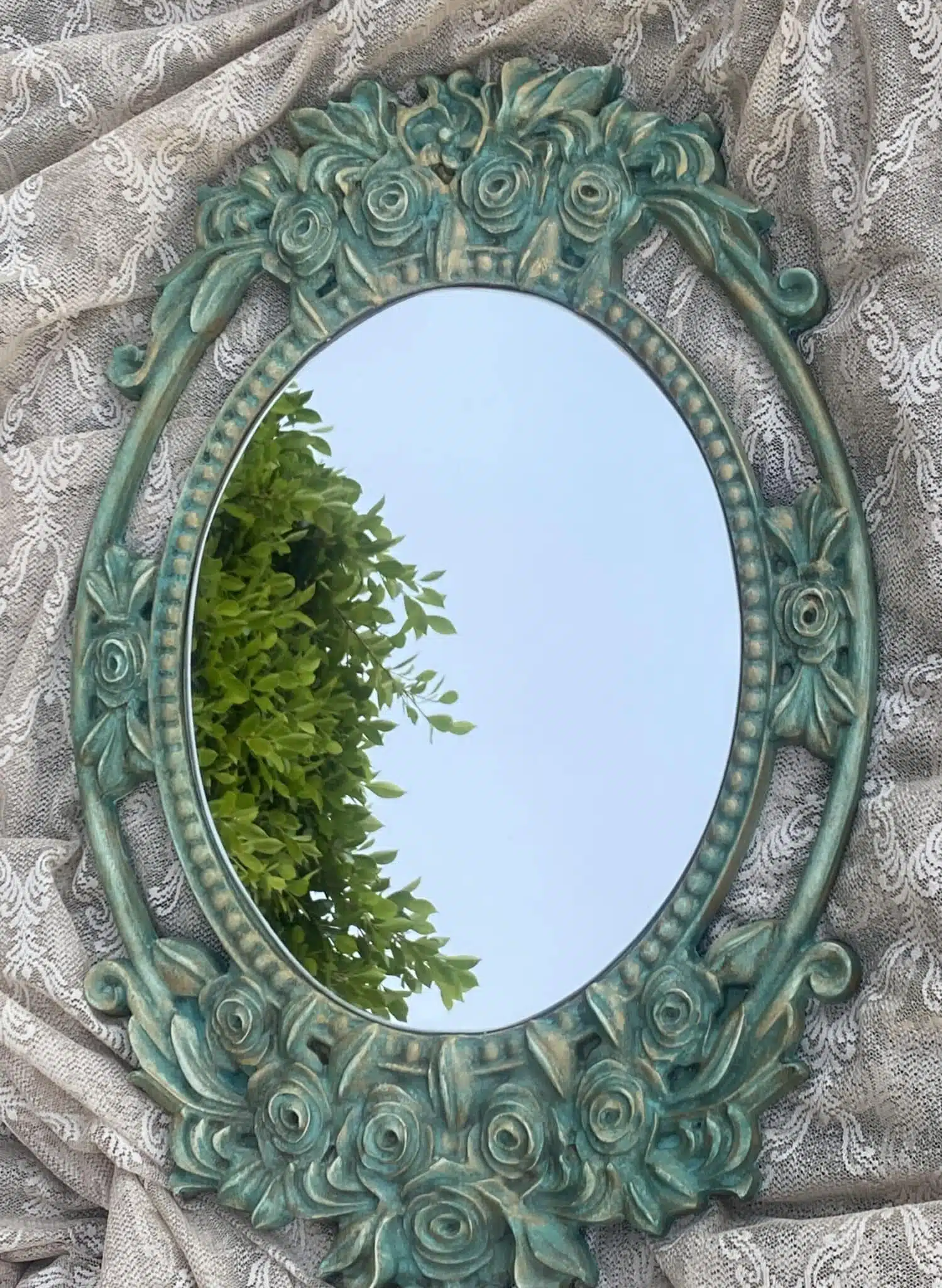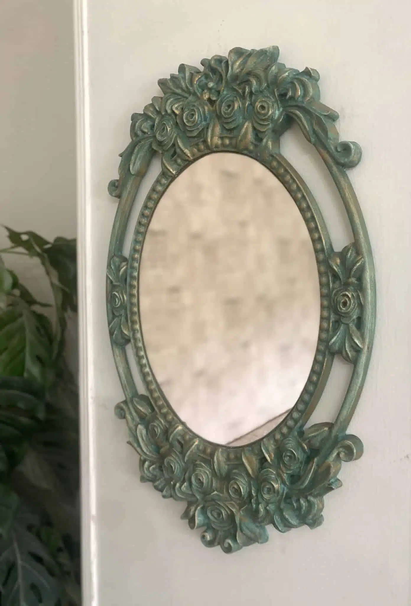 Wooden vintage green wall mirror