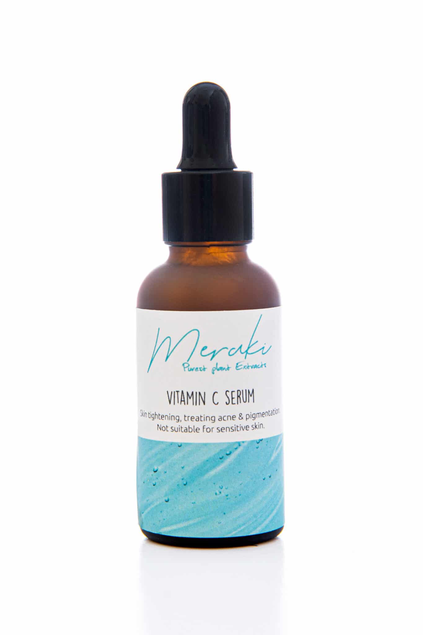10 %Vitamin C ,Hyaluronic acid, Marine collagen, Vitamin E oil, Lemongrass oil, Jojoba oil, 1% Paraben free preservative.