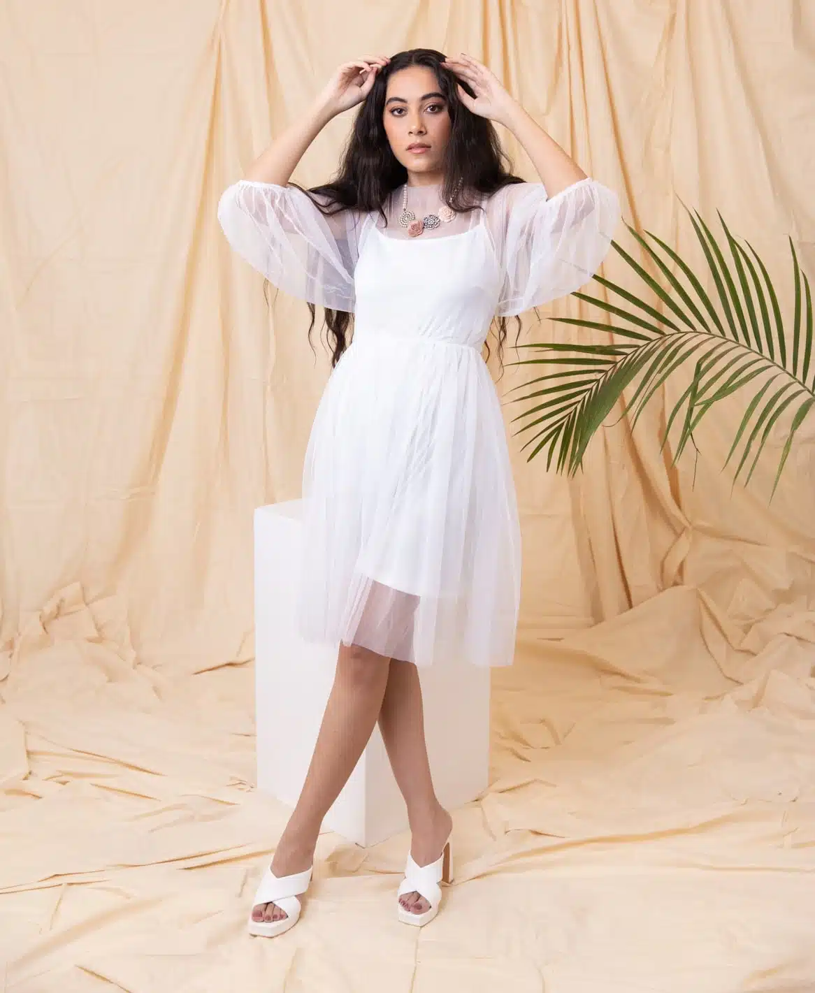 - Voluminouse Sleeve Tulle Dress + Basic Dress