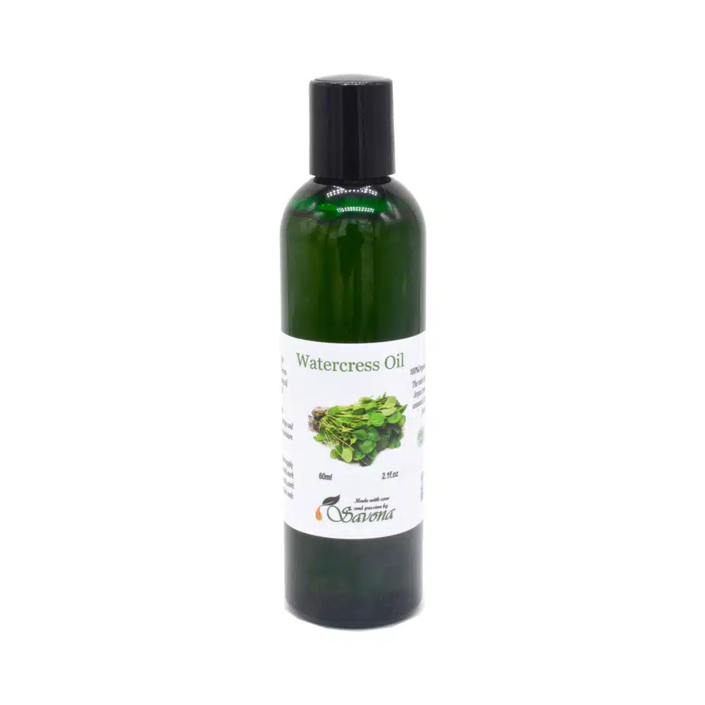 Watercress oil is rich in iron, zinc, potassium, vitamins A, B, C, and K, and glycosides which makes it a superfood for hair and scalp.