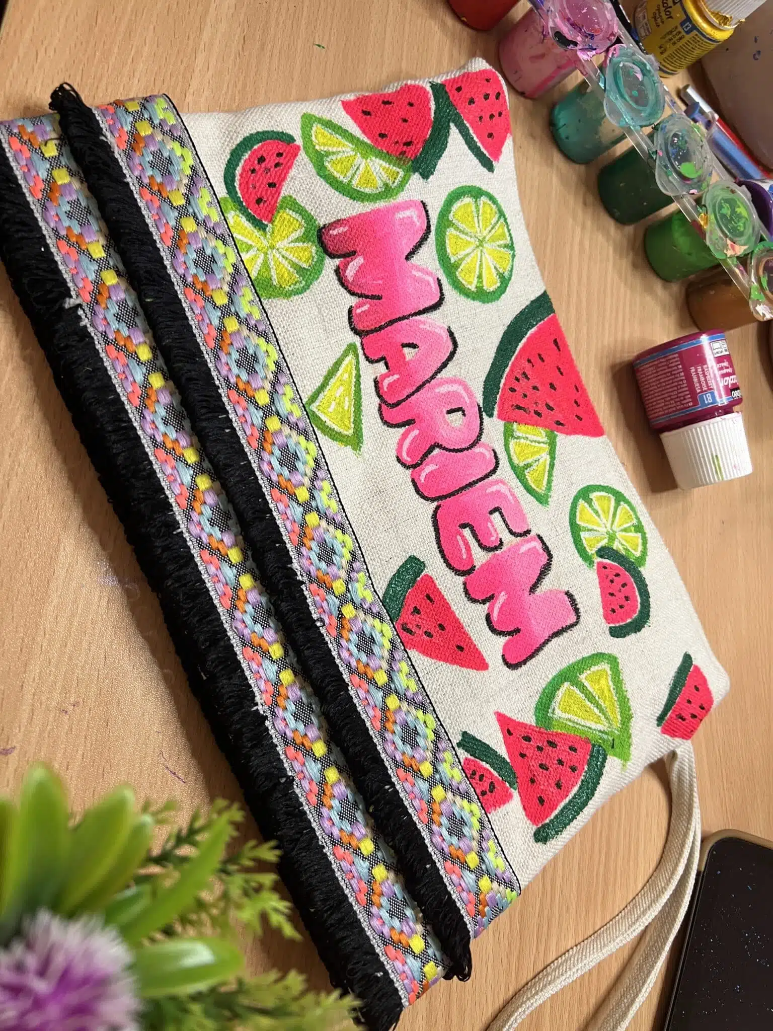 Customization is available by adding a hand paint Name on the Clutch