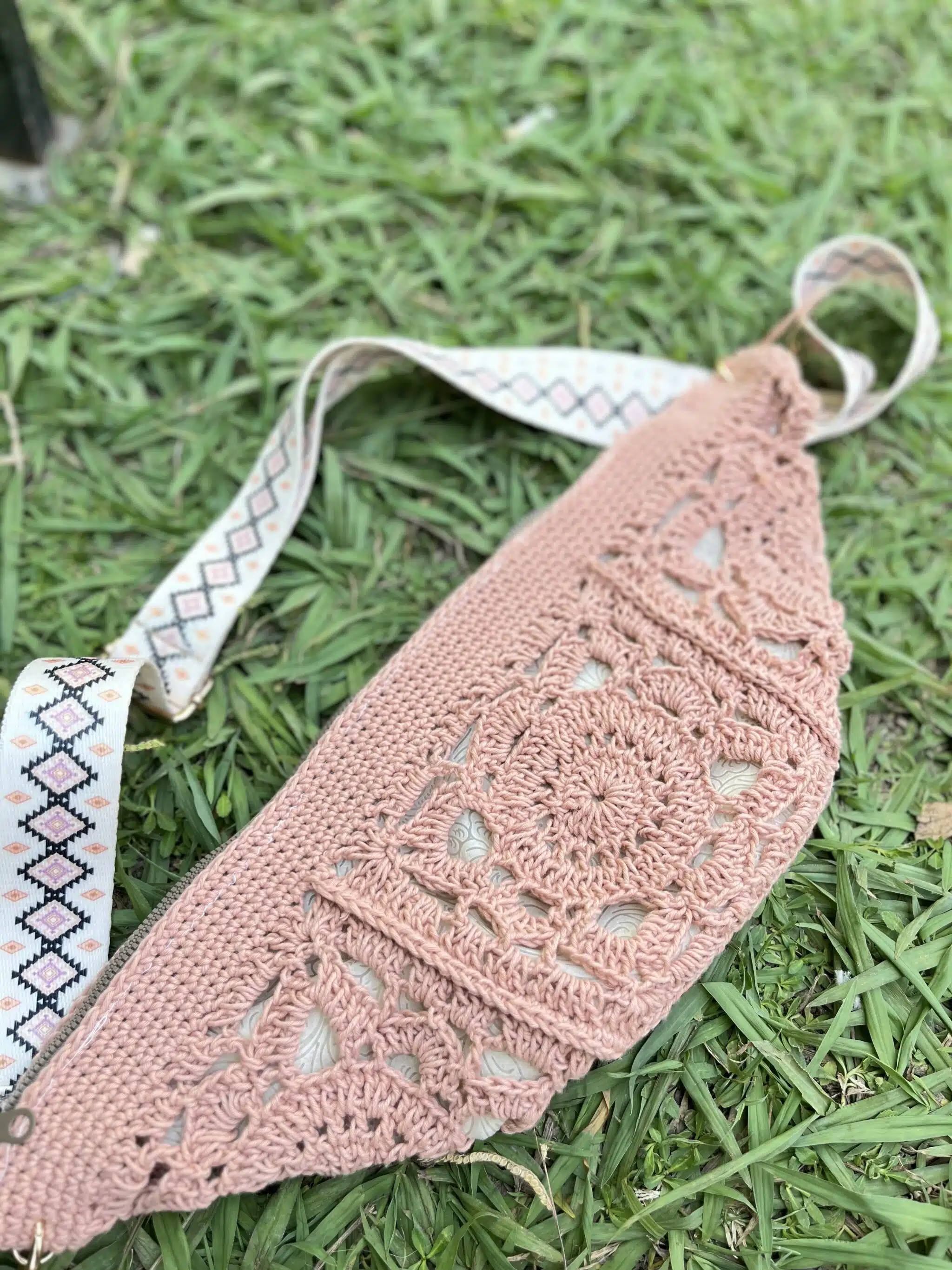 Crochet wet bag with cross belt