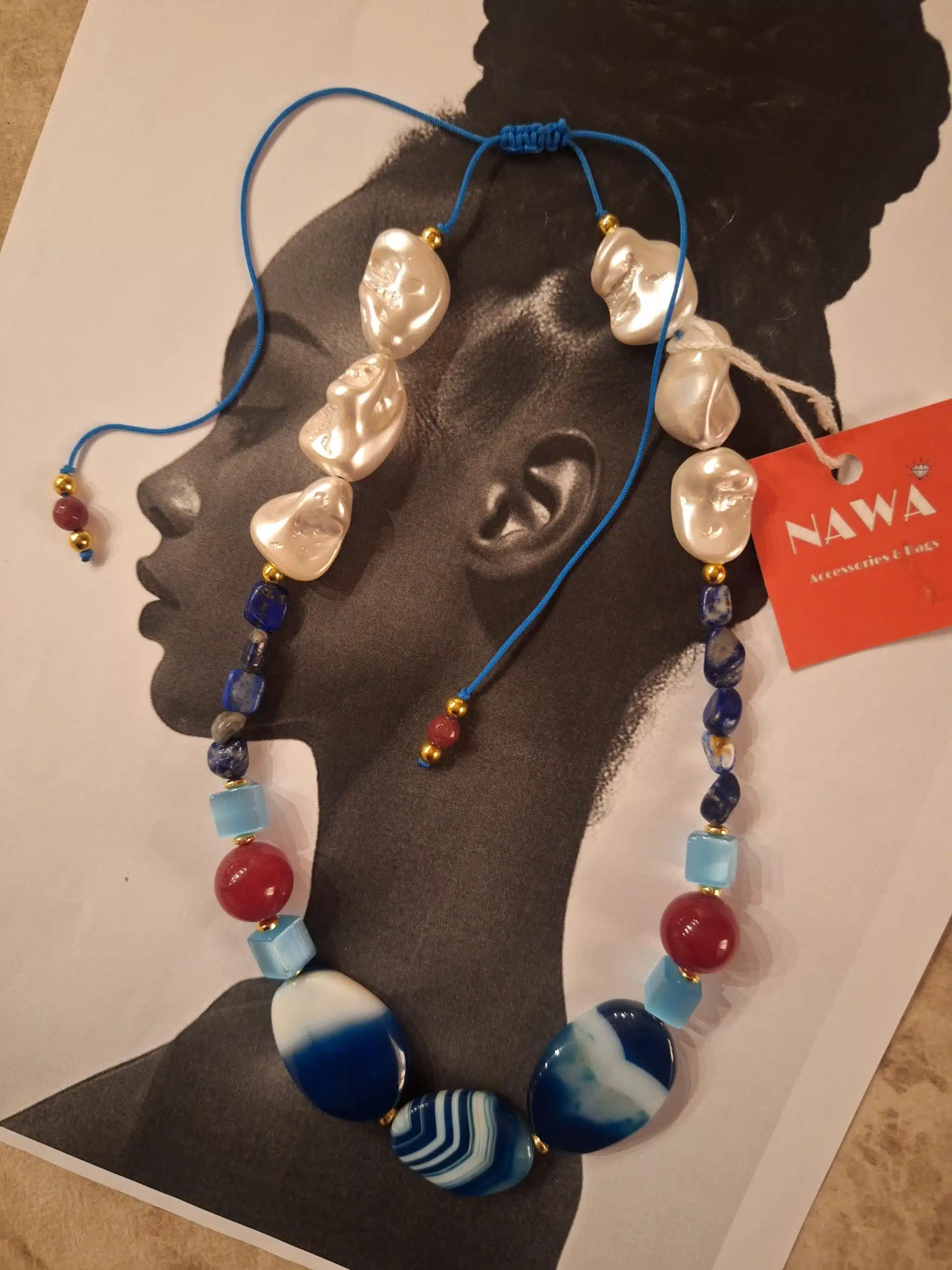 كوليه مصنوع من الأحجار الكريمة ” أحجار العقيق و اللولي و أحجار الكاداي”