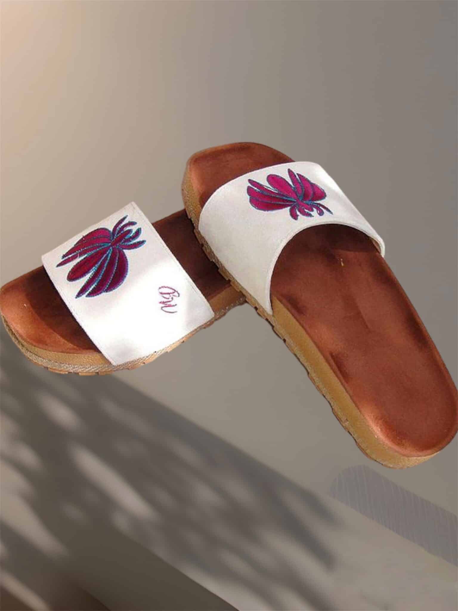 White embroidery bee slipper