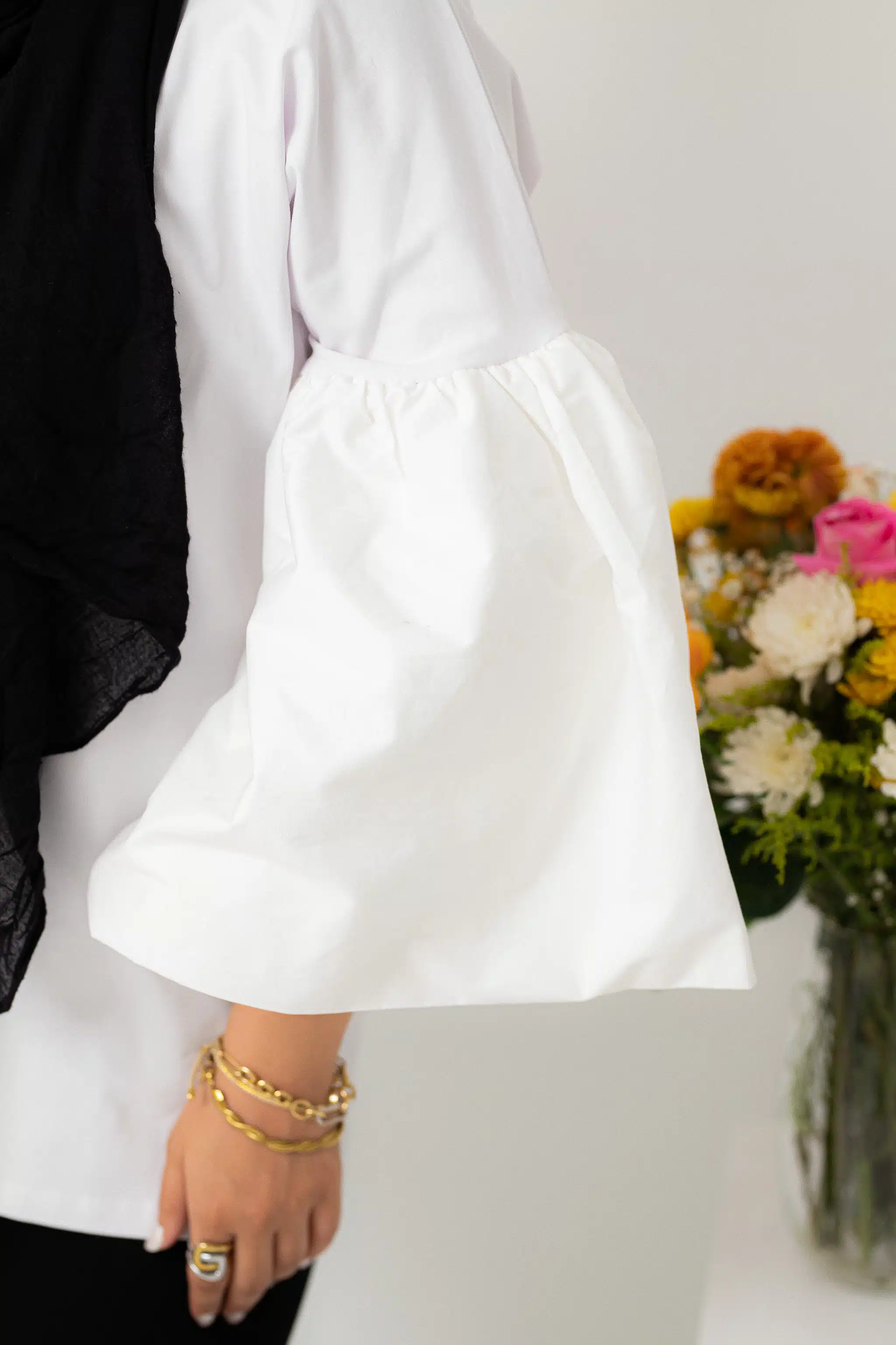 - flared poplin sleeves