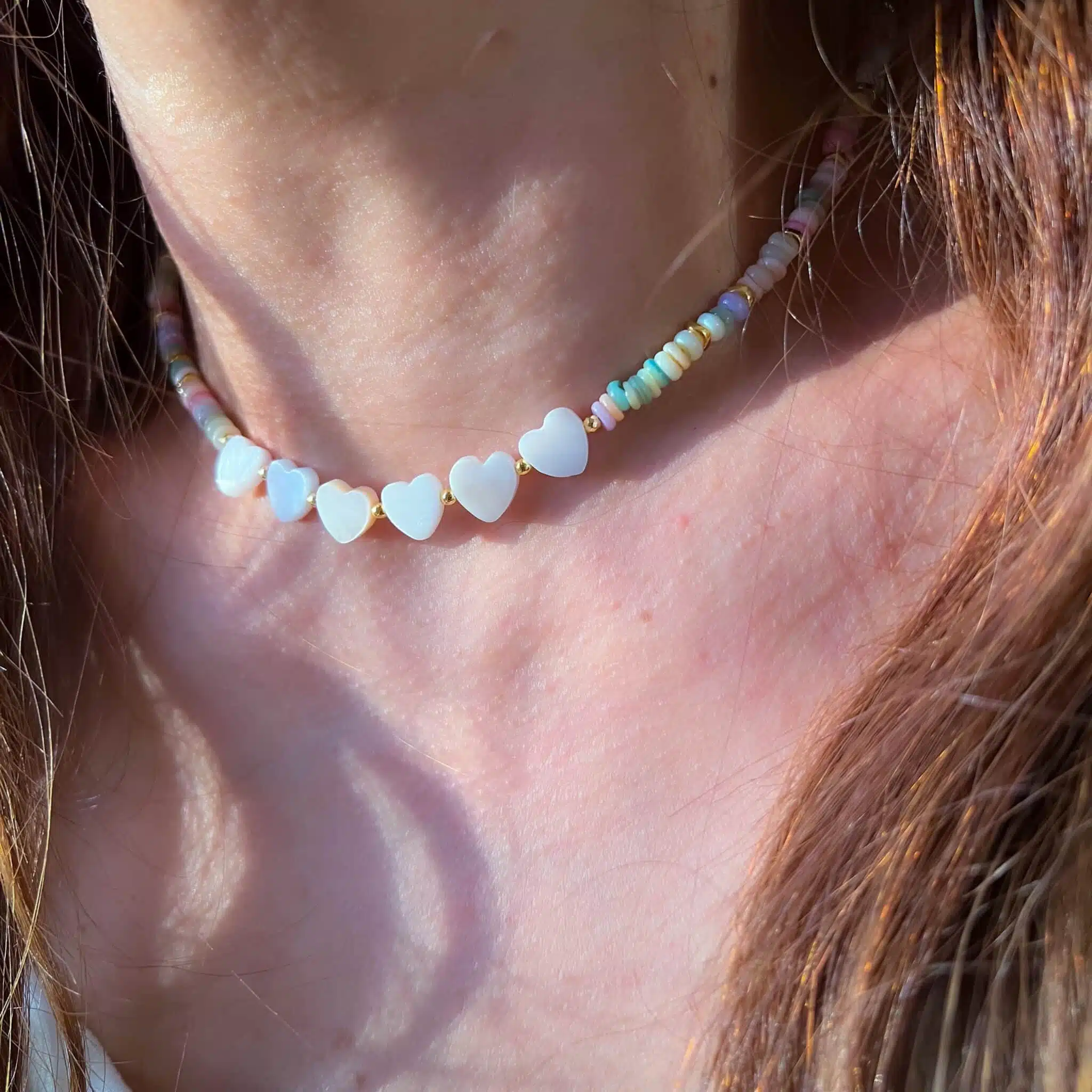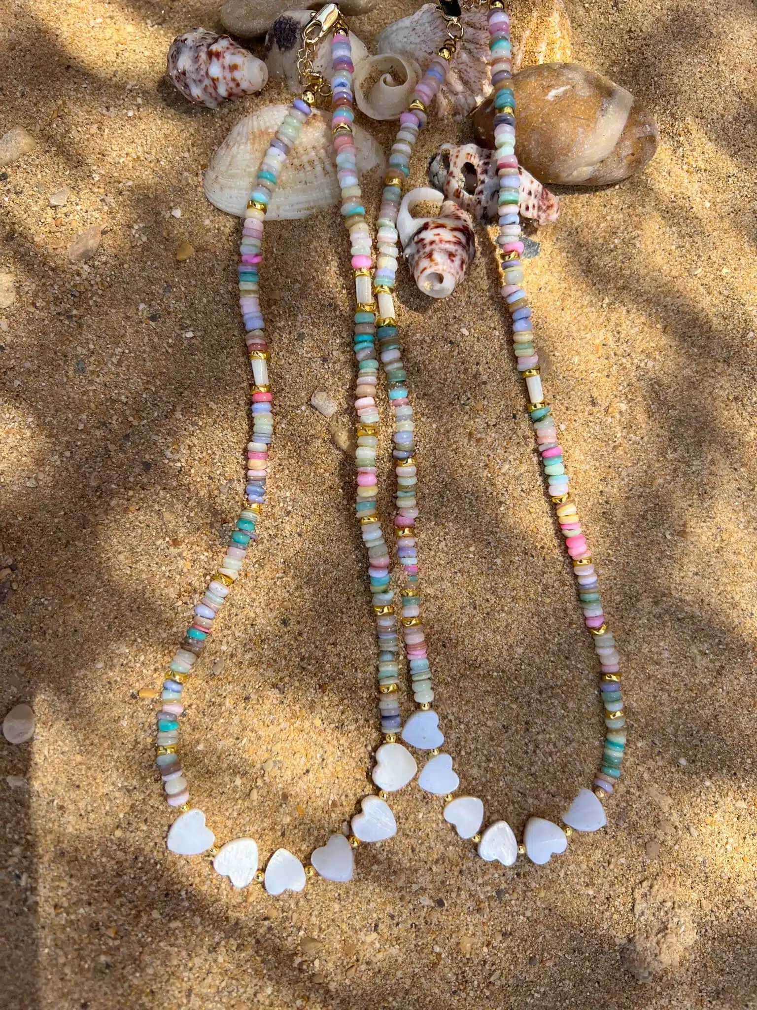 Natural shells (White hearts shells & disc colourful shells ) Hematite gold plated .