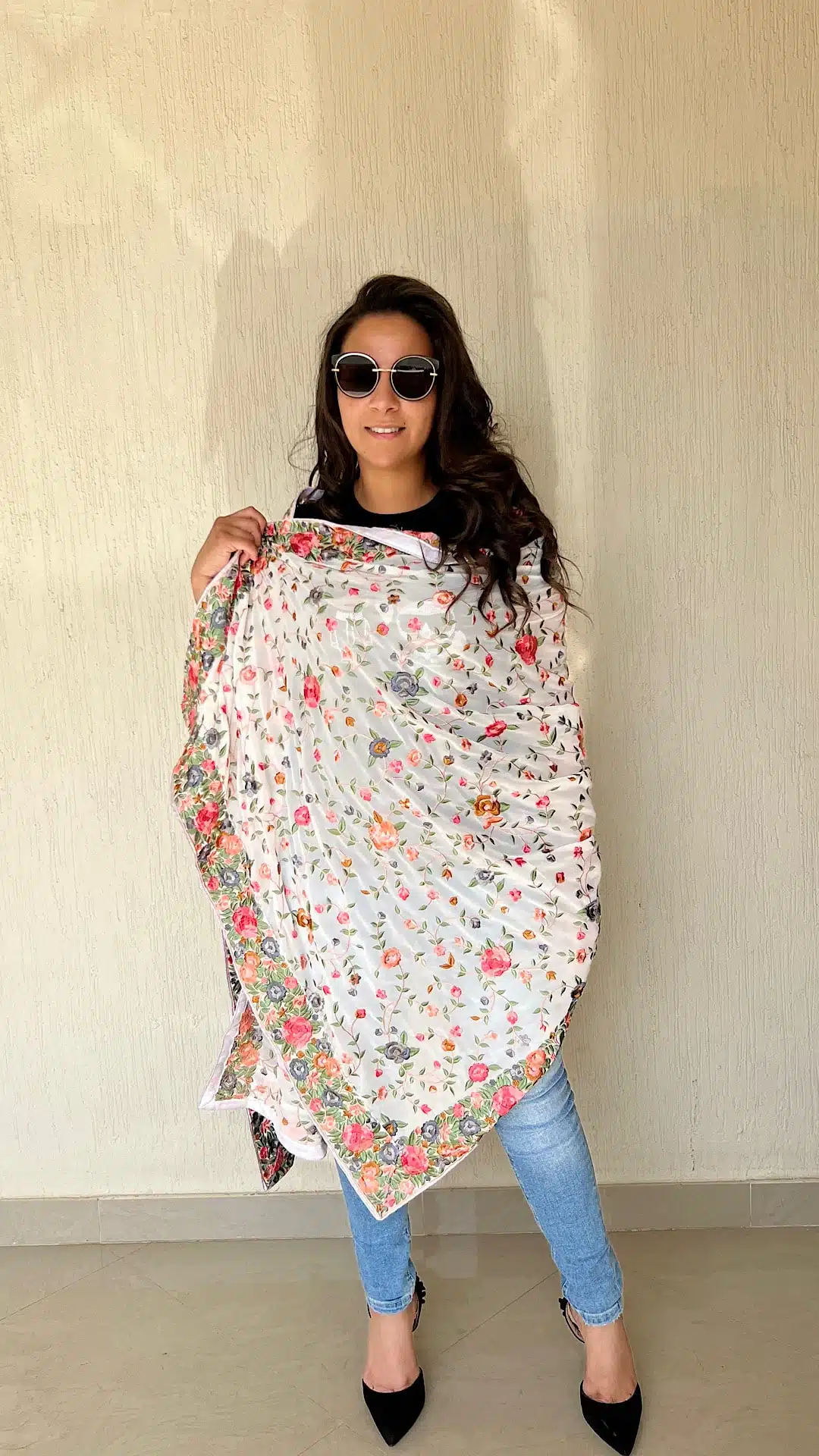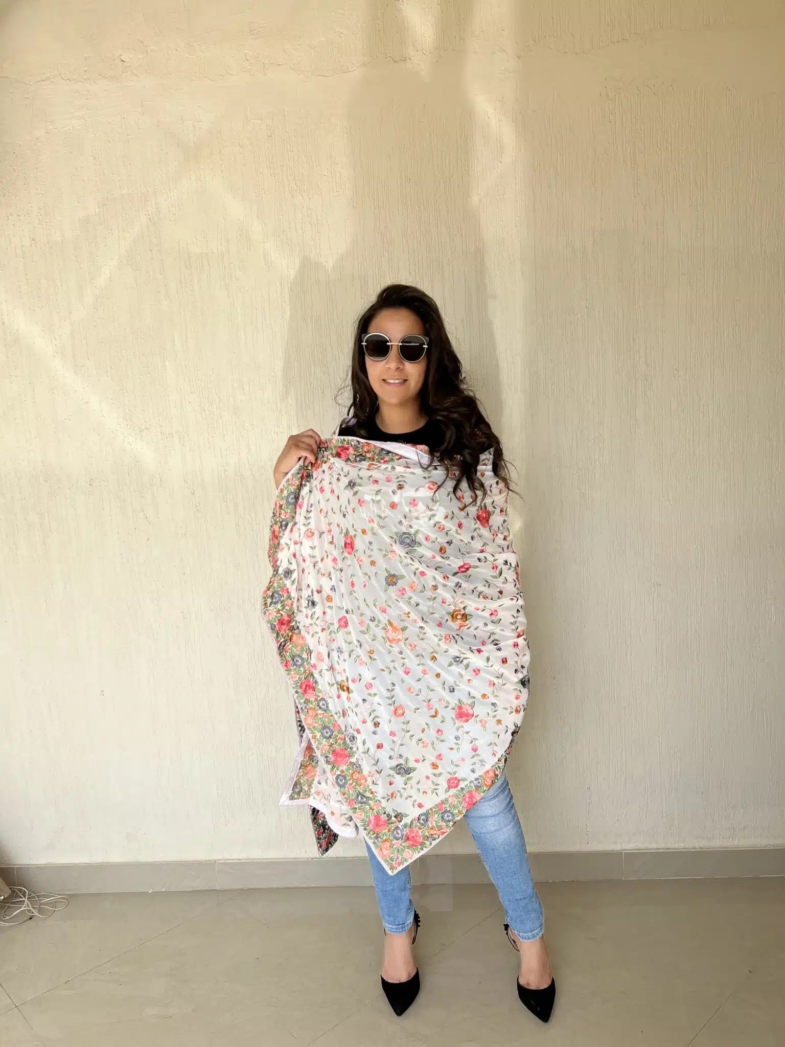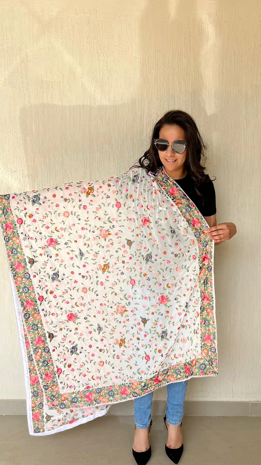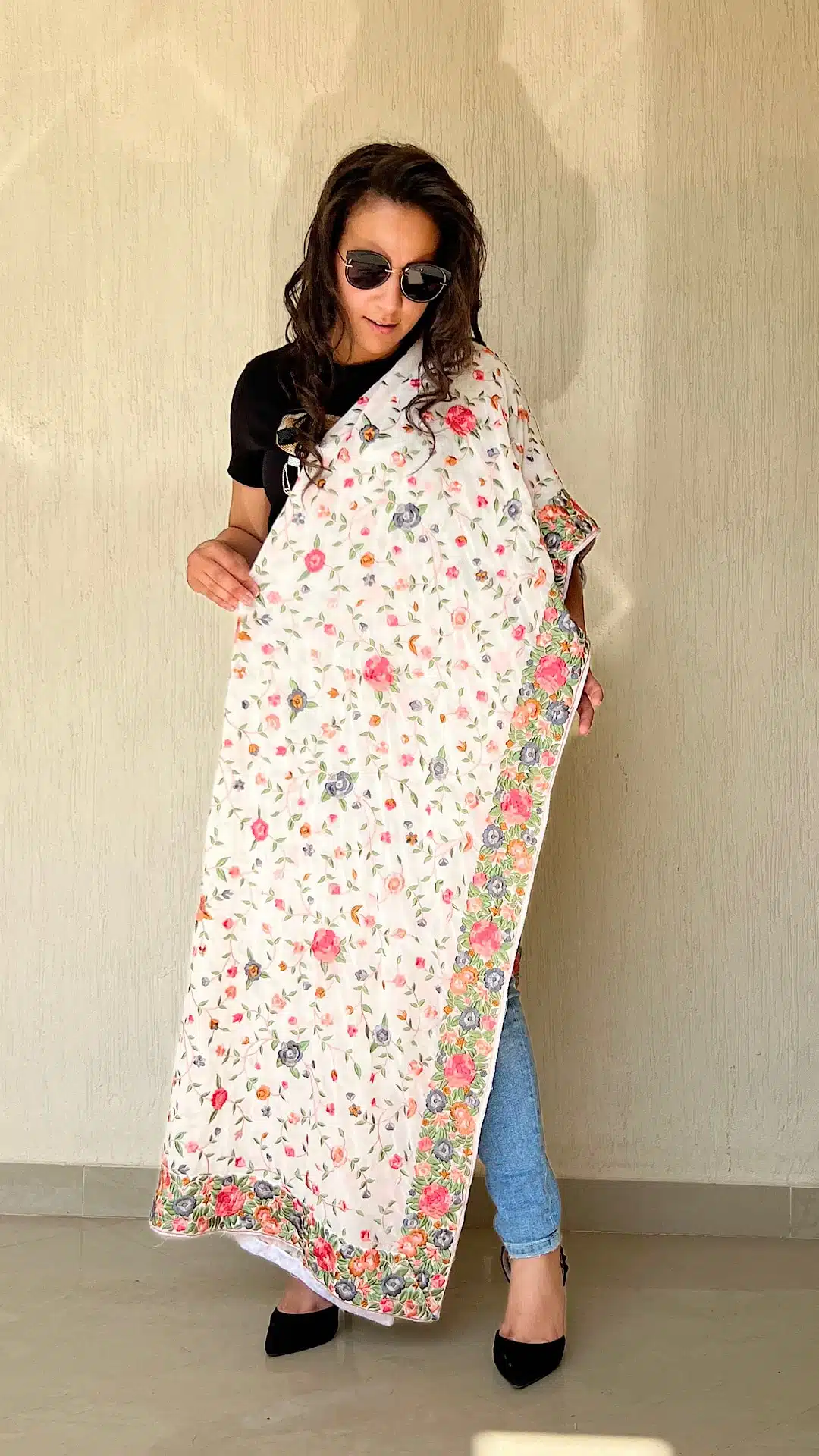 White Indian embroidery shawl
