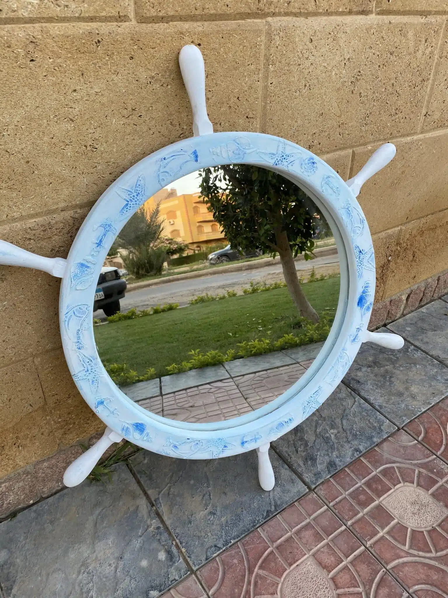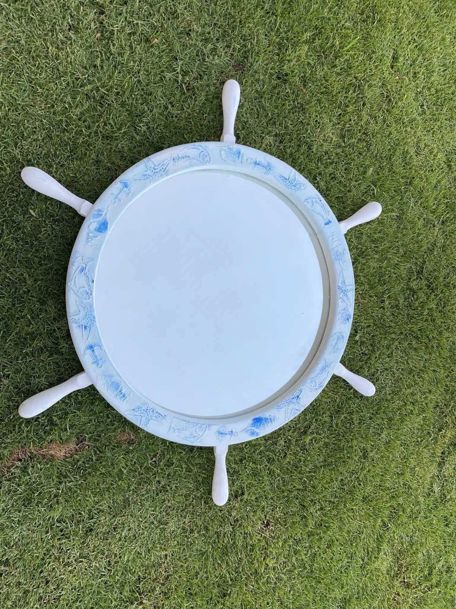 Wooden Summer Mirror Wheel Design and Coastal Patterns