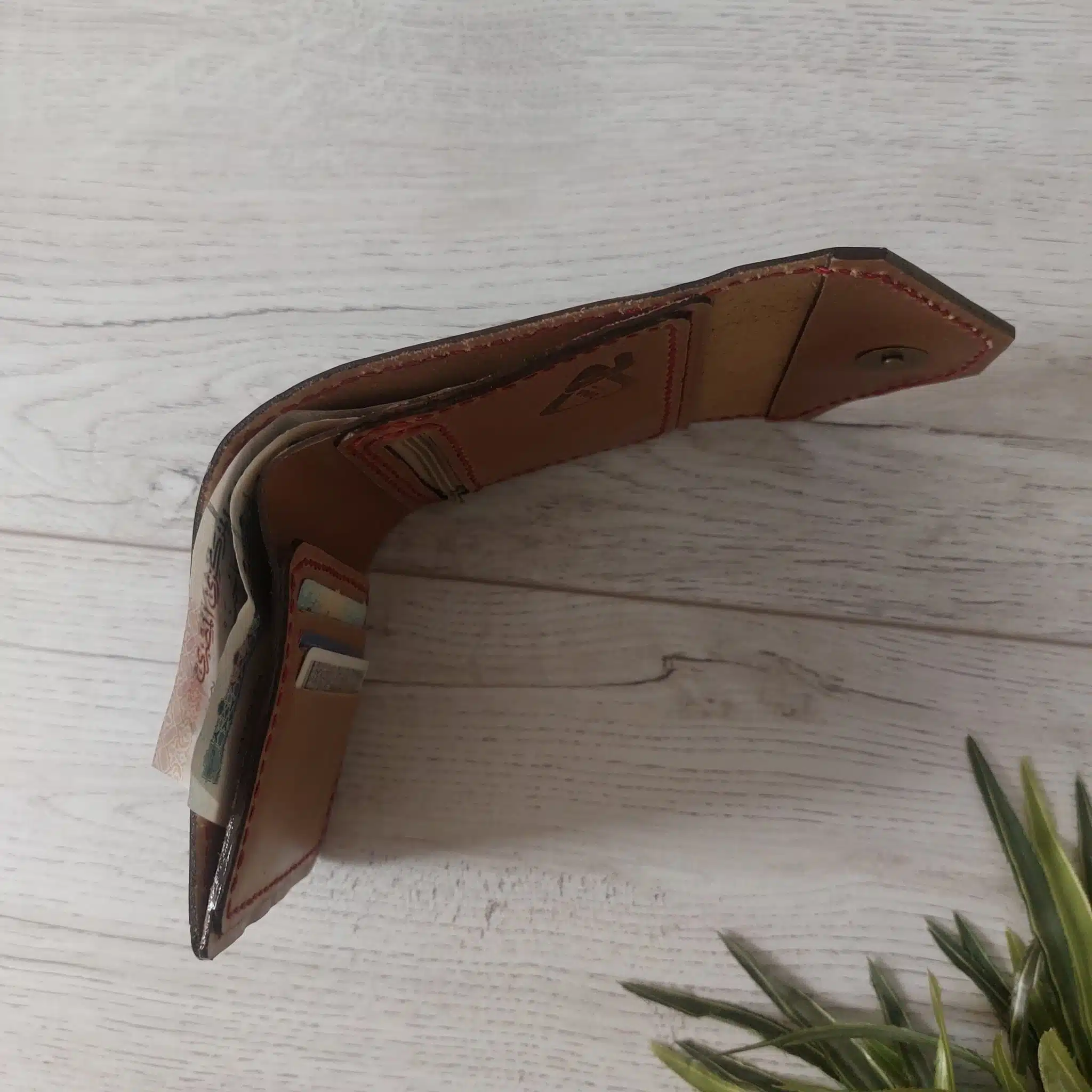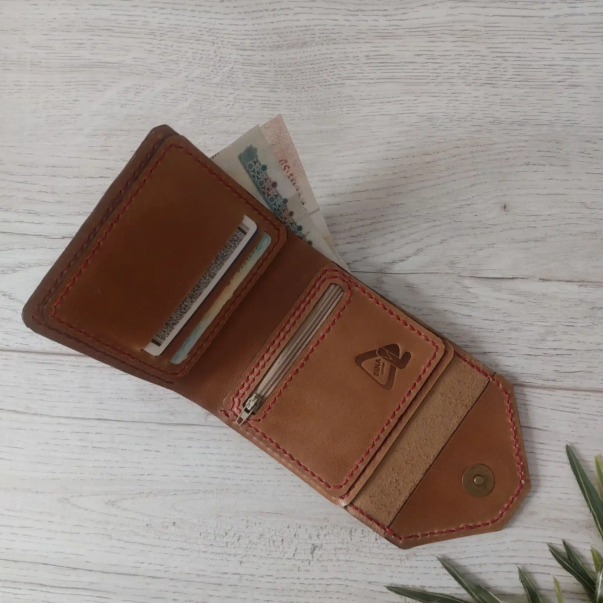 محفظة حريمى صغيرة جلد طبيعى هاند ميد لون كافيه(رسمة بالون الاحمر)