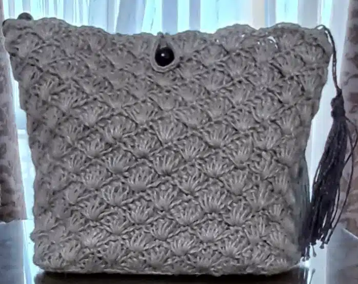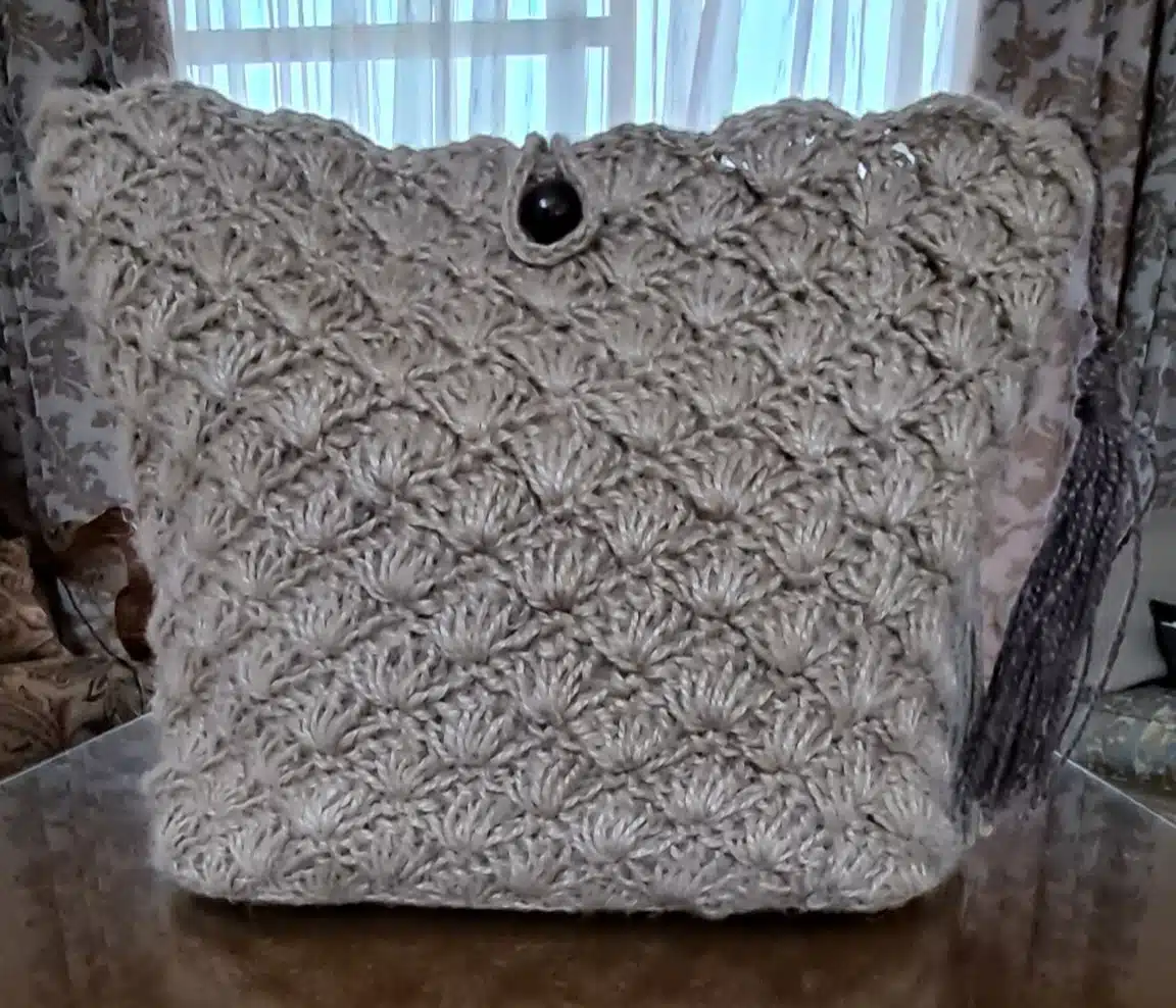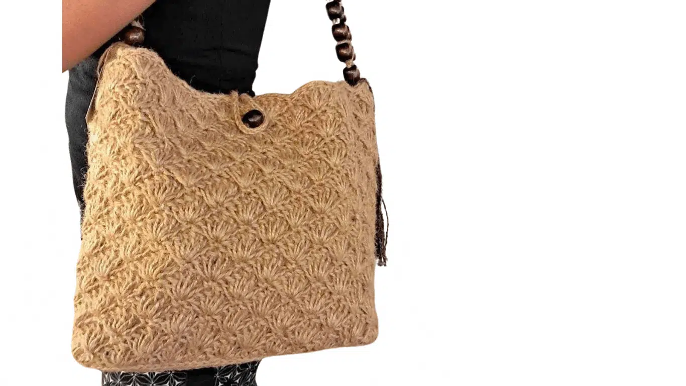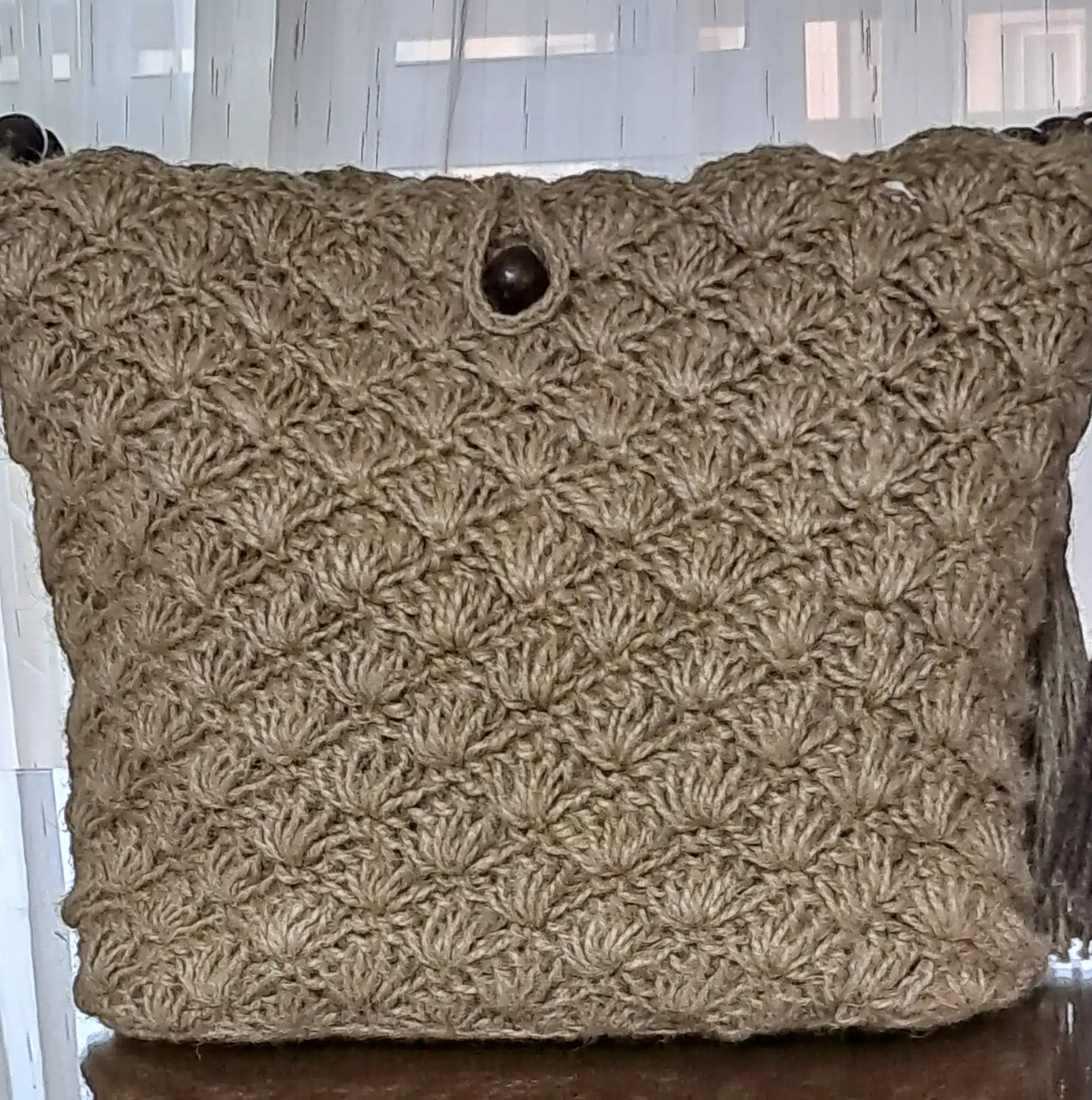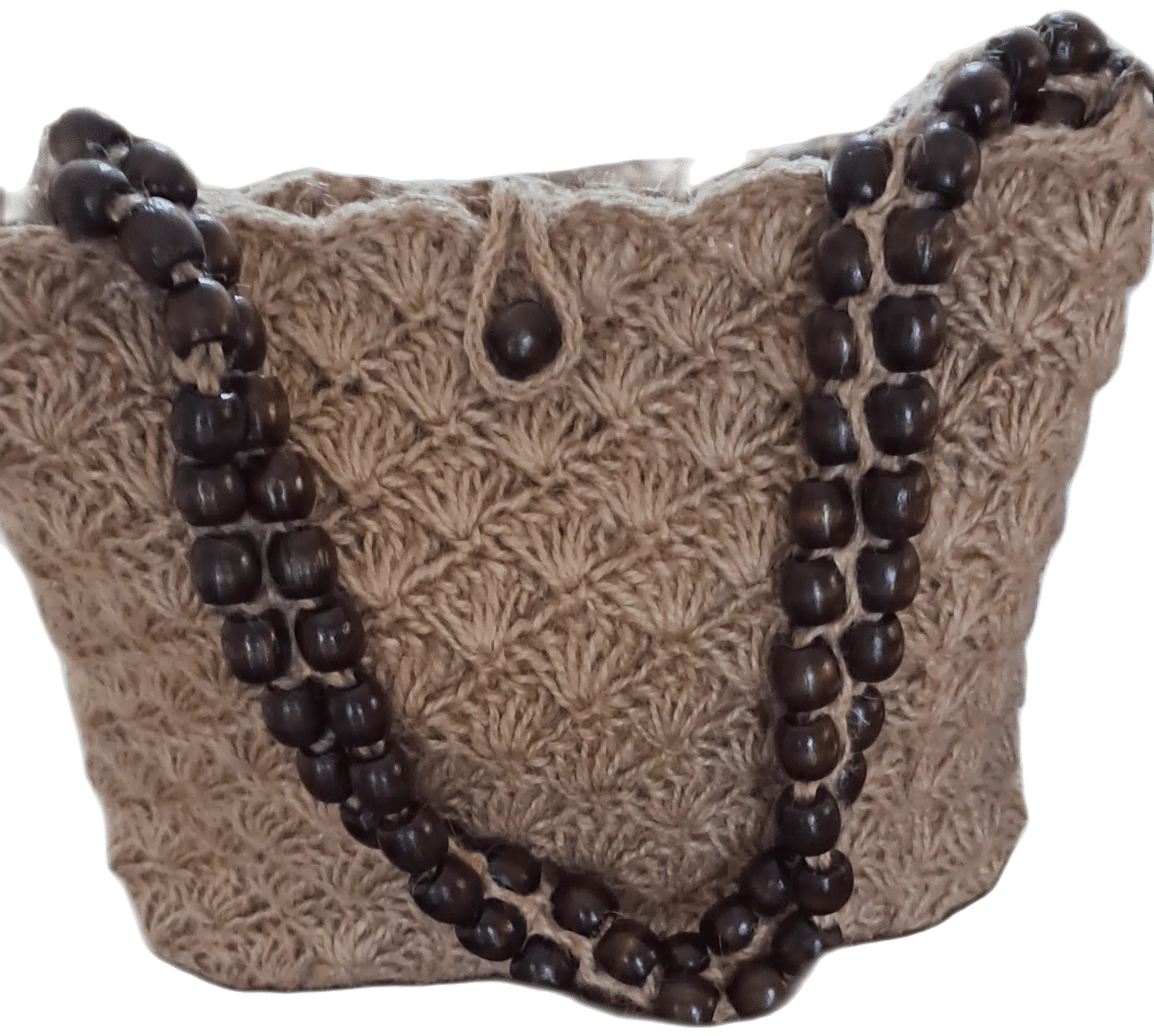 Handmade crochet bag made of natural jute, with beads handle and inner lining , pockets & zipper