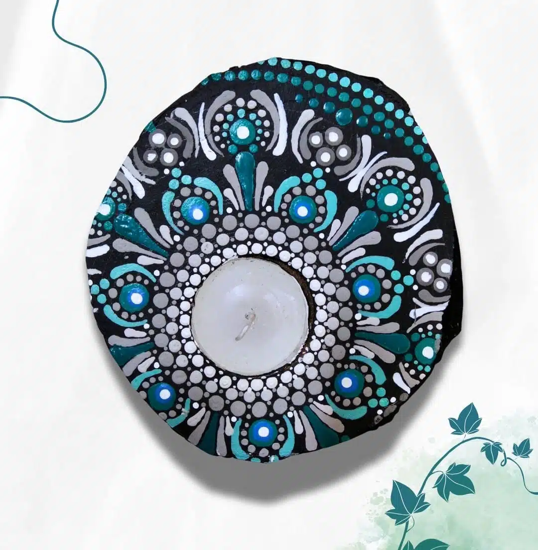 a wood branch painted with plastic natural colors, with a candel in center. you can change the candel anytime