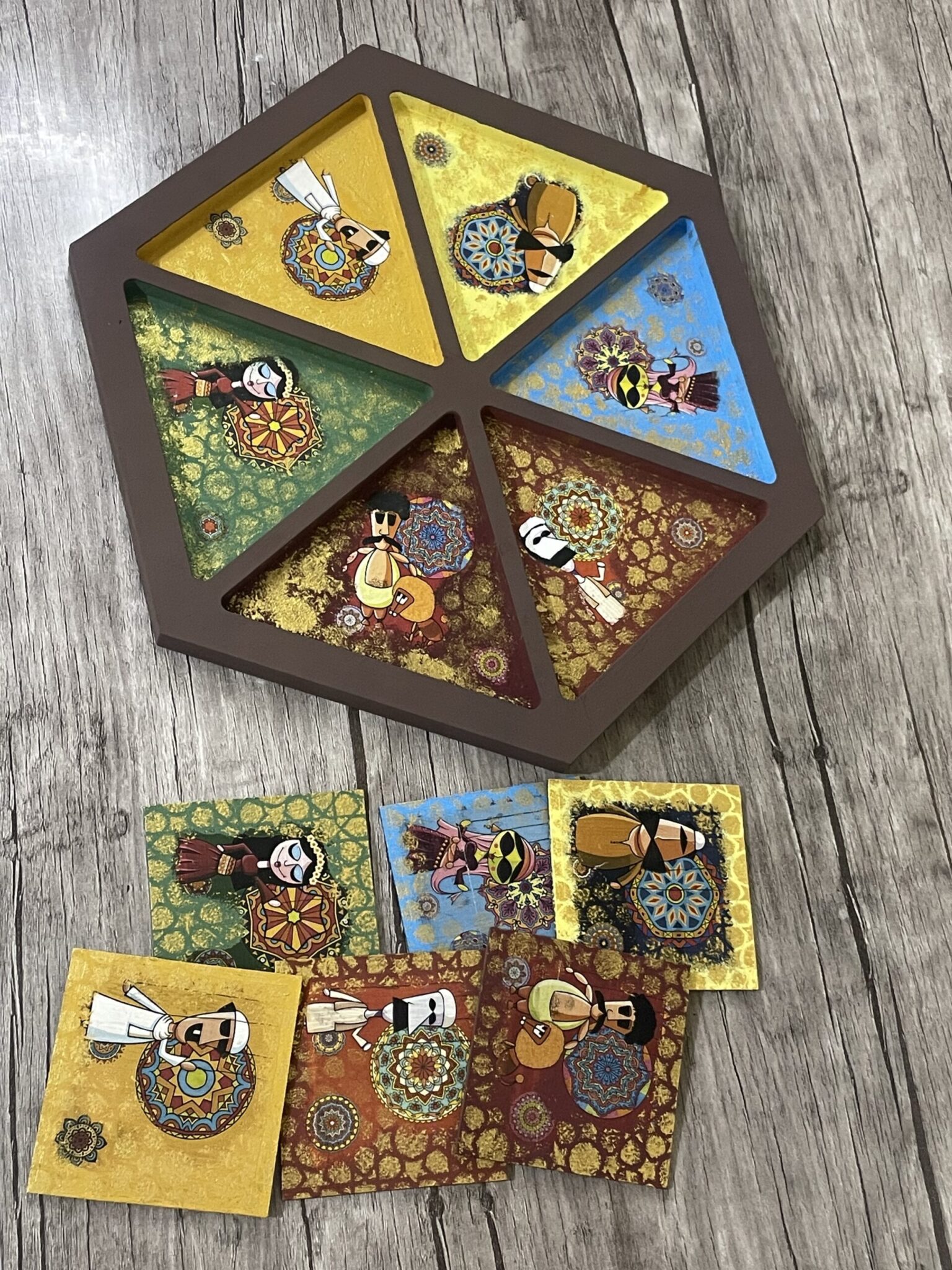 Wood nuts plate 40 cm, with six coasters 10*10 cm El Lela elkebera