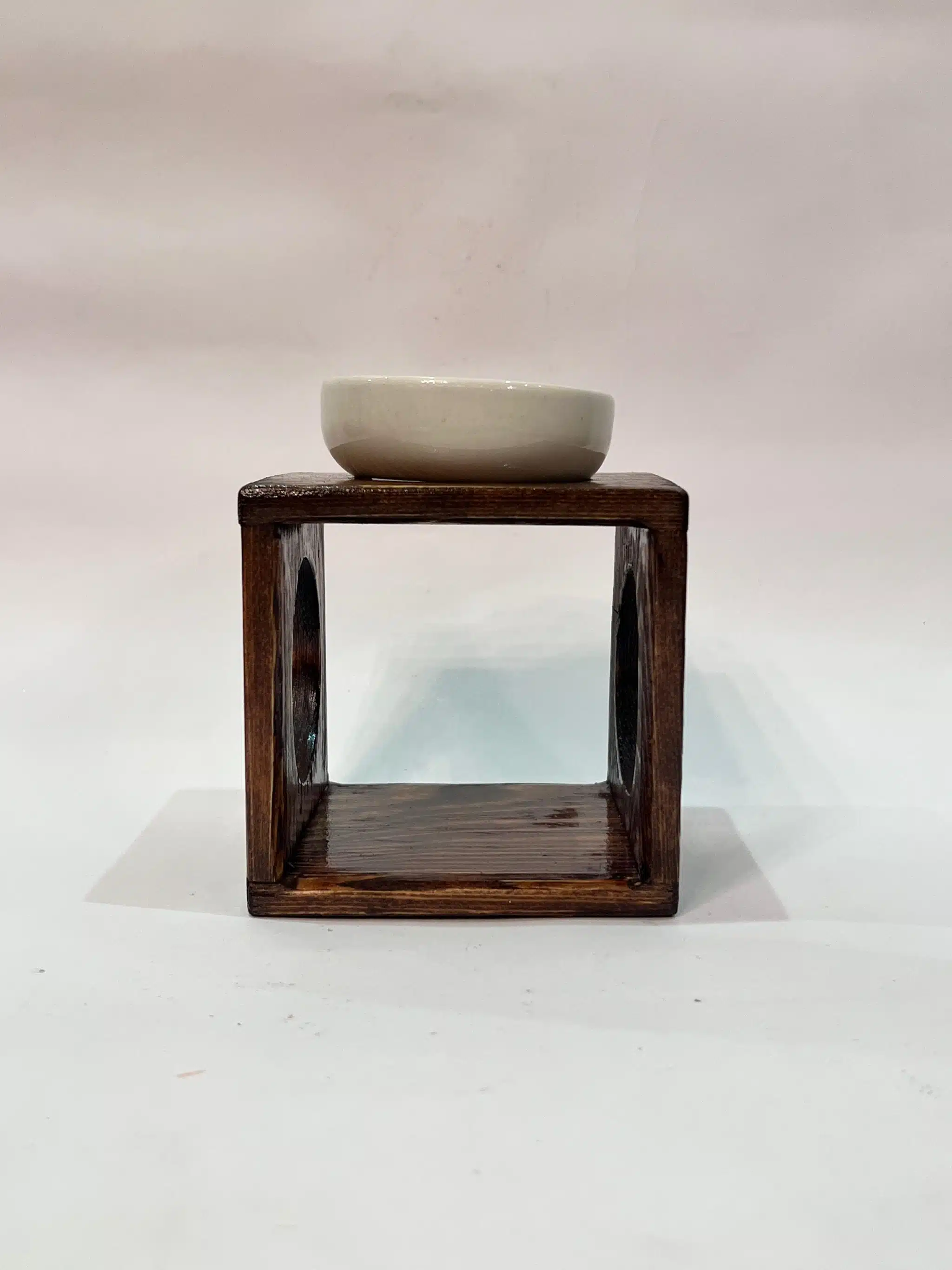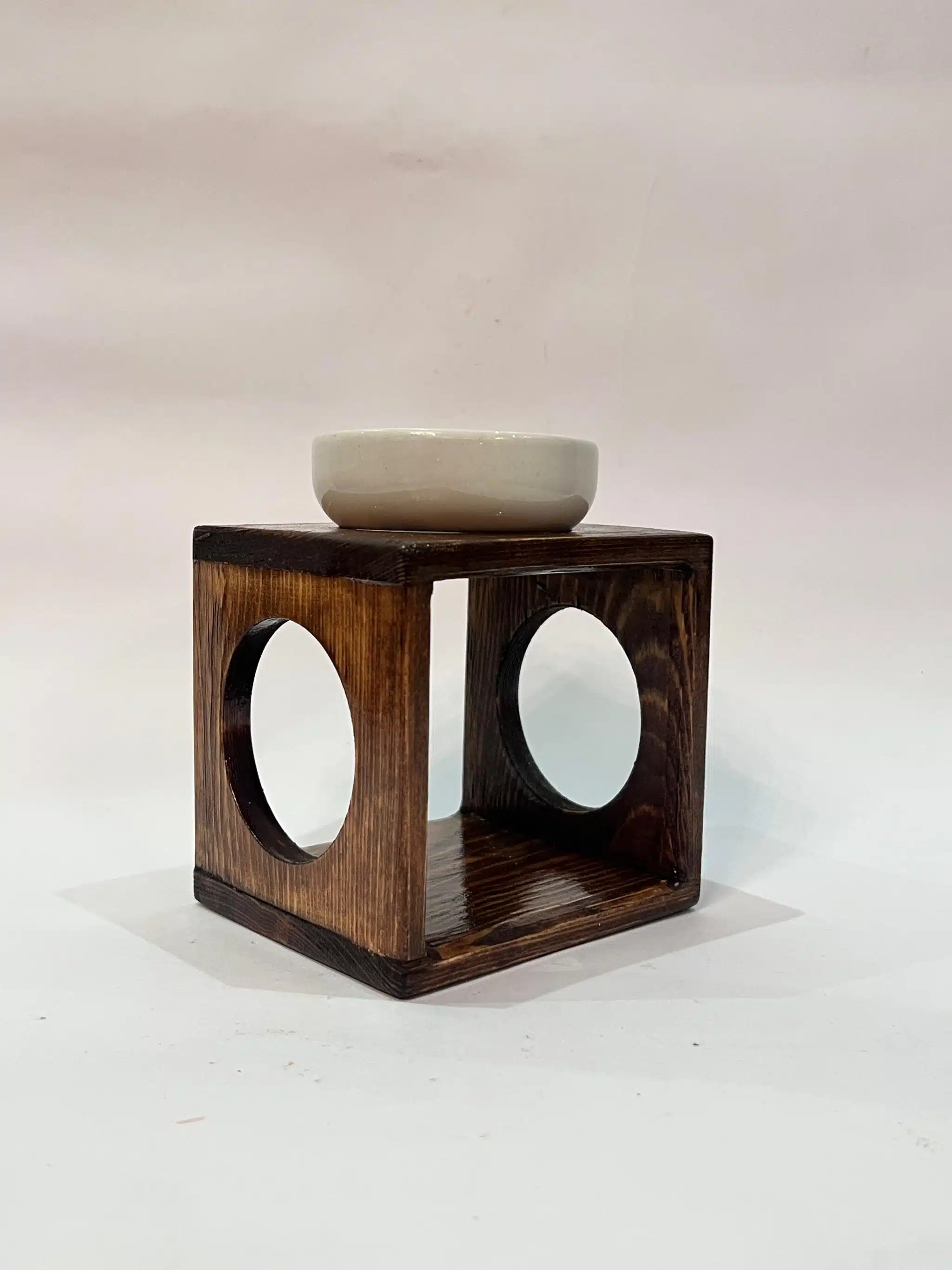 A wooden oil burner is a decorative and functional device used to diffuse essential oils into the air, creating a pleasant and aromatic atmosphere. Typically crafted from wood, these burners often feature a bowl or dish where scented wax or a few drops of essential oil are placed. A tea light candle underneath the bowl gently warms the oil mixture, causing the aroma to evaporate and spread throughout the room.