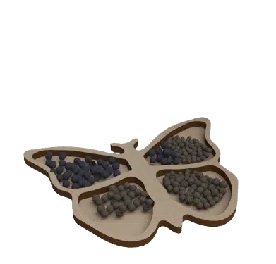 A wooden snack plate shaped like a butterfly would be a beautiful and whimsical design. The plate’s structure would mimic the graceful wings of a butterfly, divided into distinct sections for holding different snacks. Each wing would have a curved, flowing shape with intricate detailing, perhaps etched or lightly carved to resemble the delicate patterns found on a butterfly’s wings.