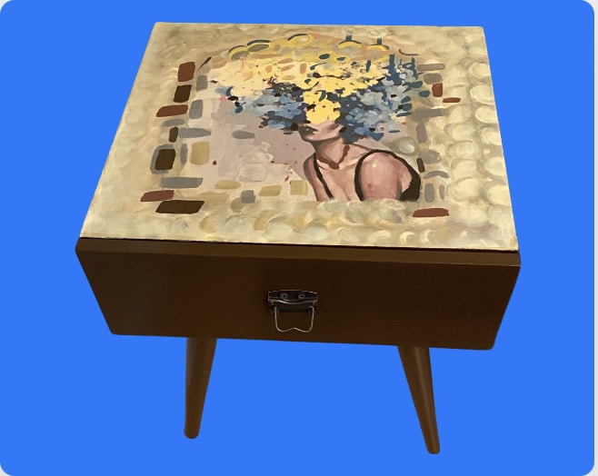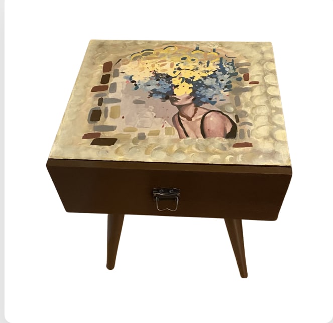 45 x 45 cm zan wood tables with a drawer Hand painted and Decouoage Acrylic colors with a water resistance coat