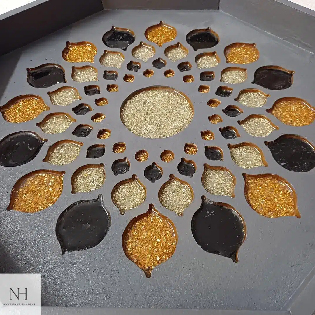 صينيه من الخشب مع الاحجار و الريزن