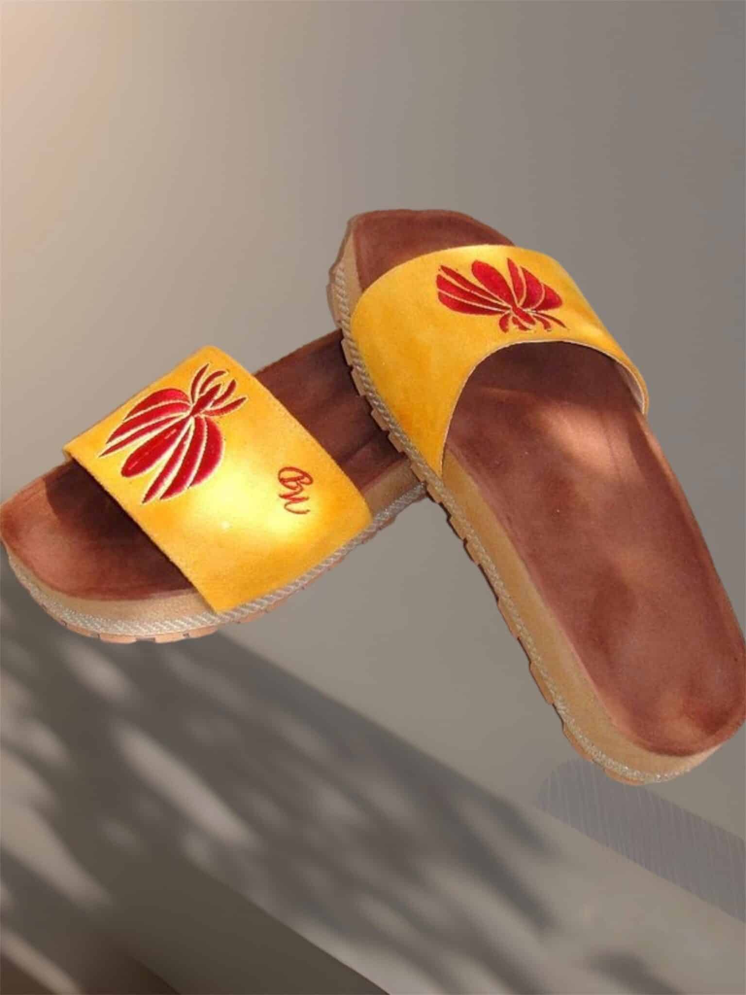 Yellow embroidery slipper