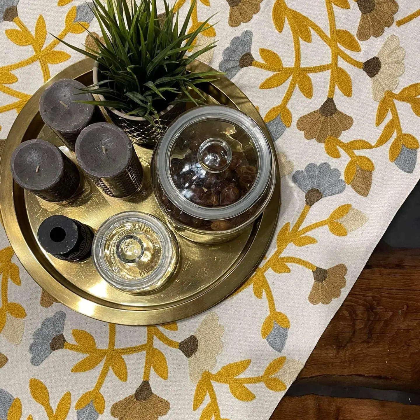 Machine-embroidery wide runner.