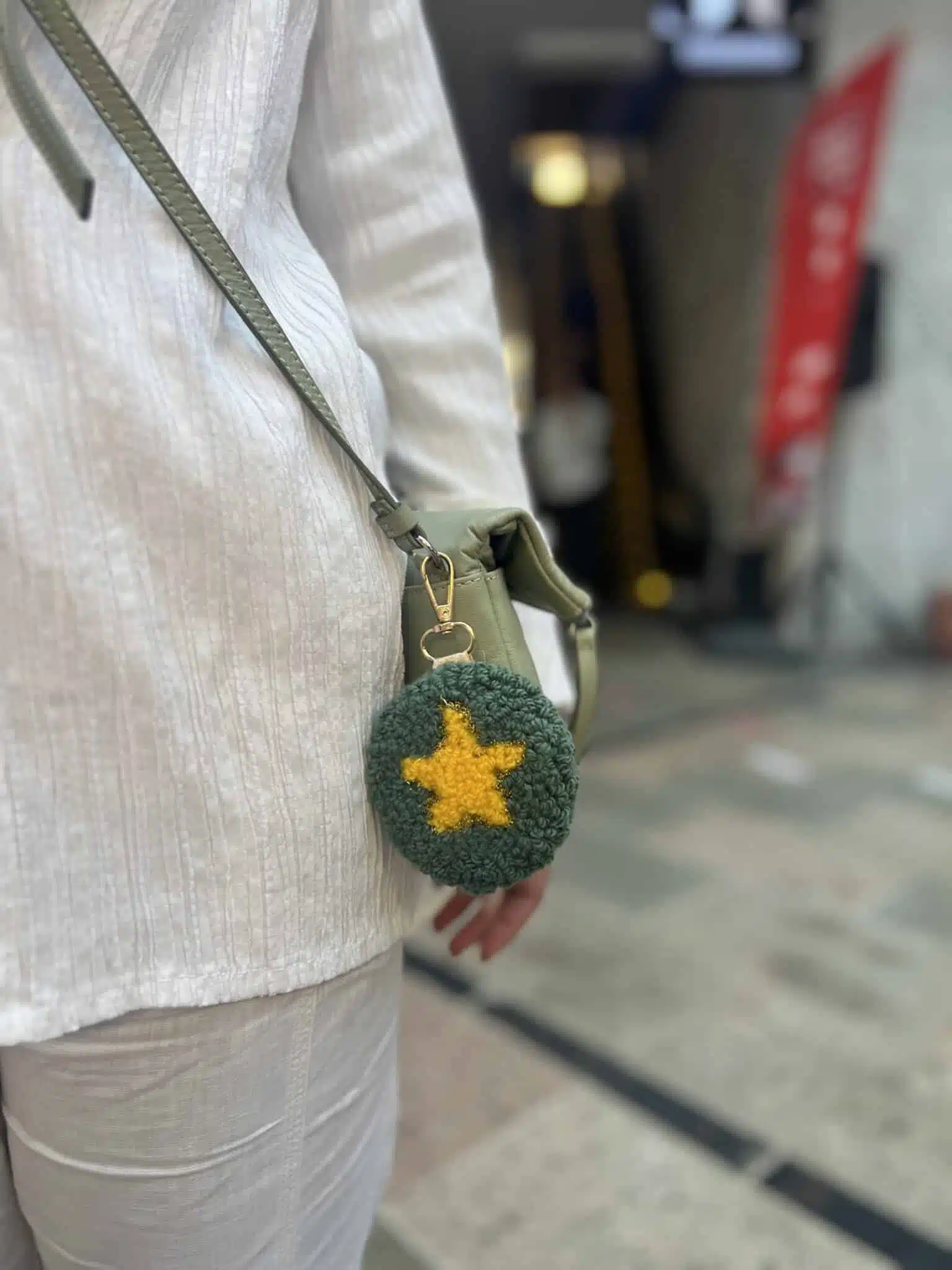 Hand tufted. Chain diameter: Mirror diameter: With golden chain.
