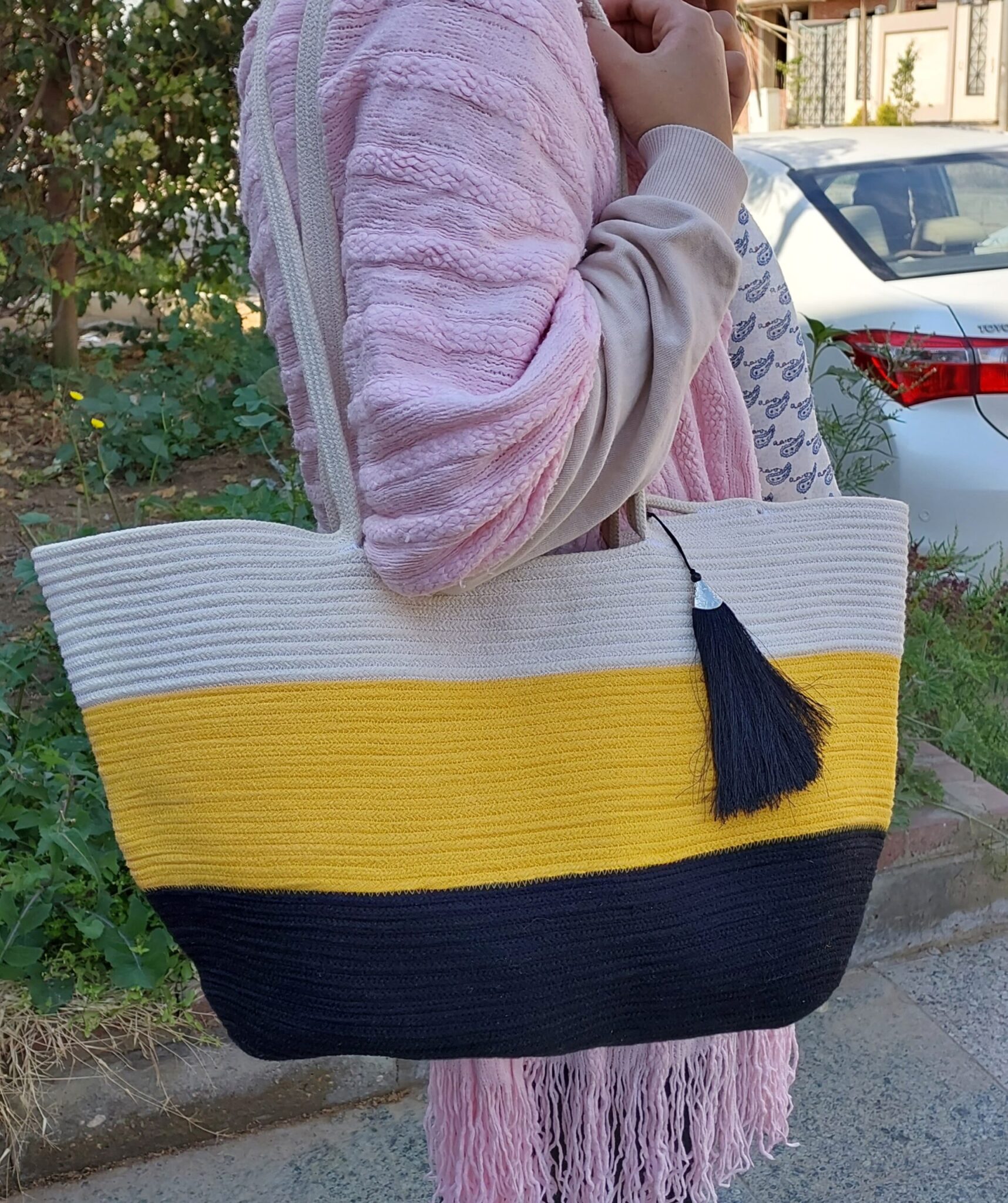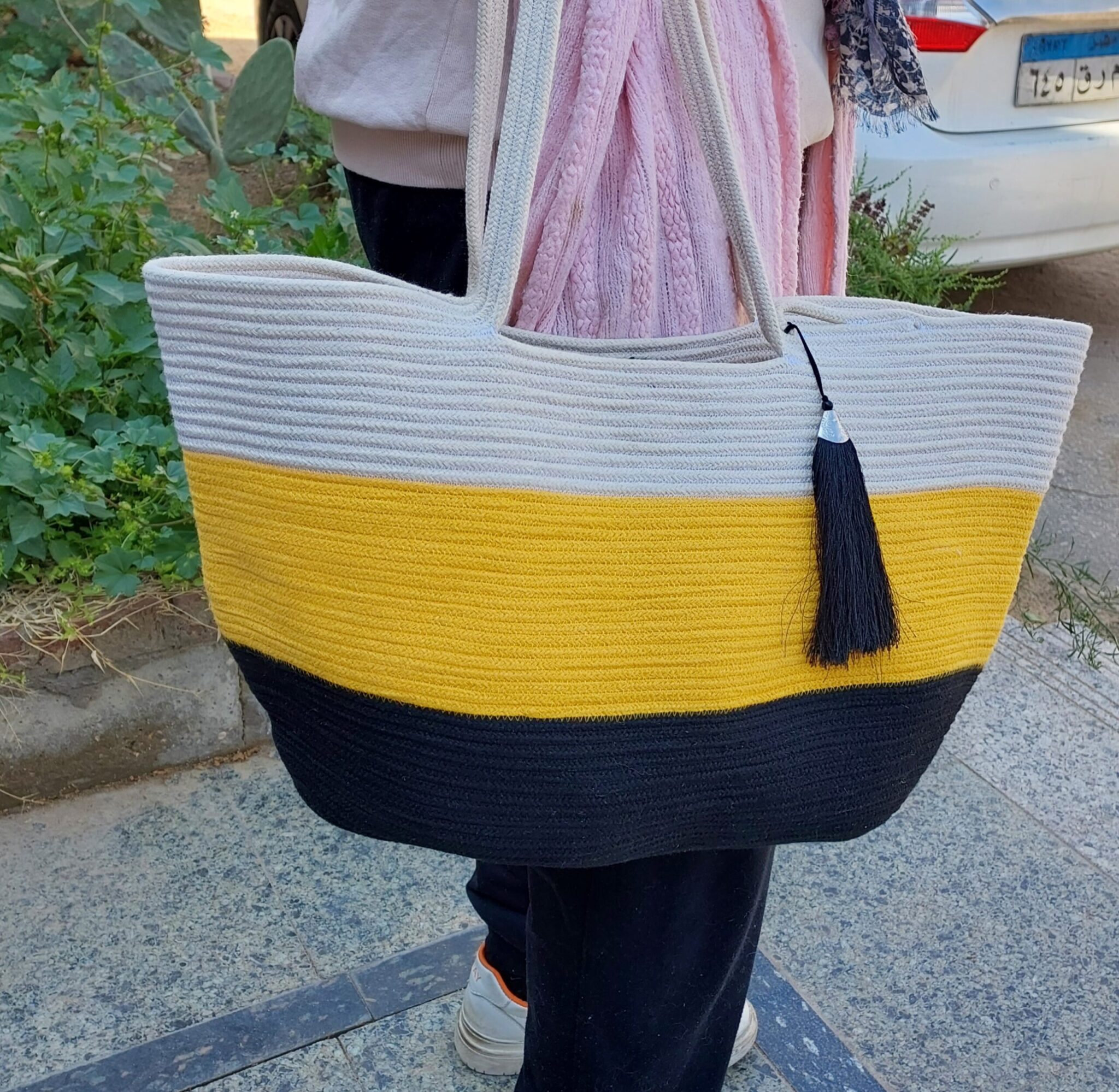 شنطة يدوي بالكامل من القطن الخالص قابلة للغسيل