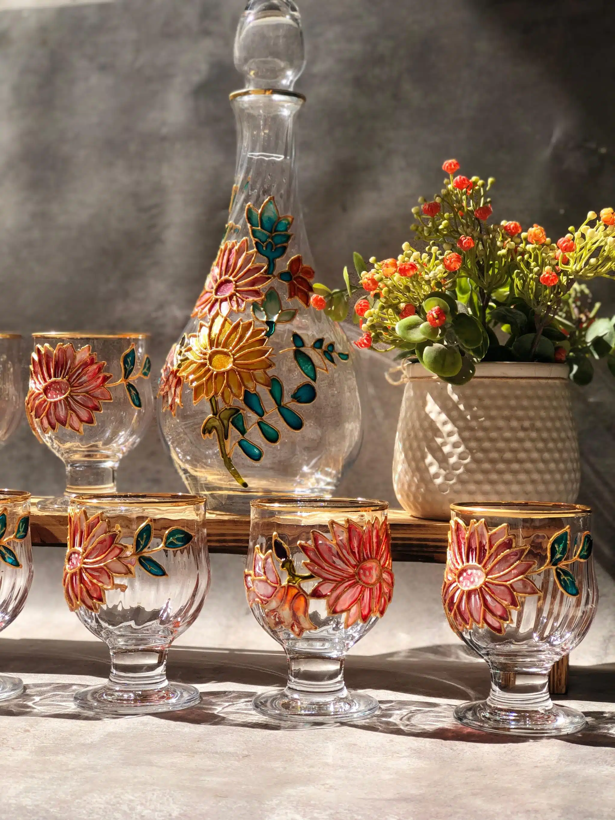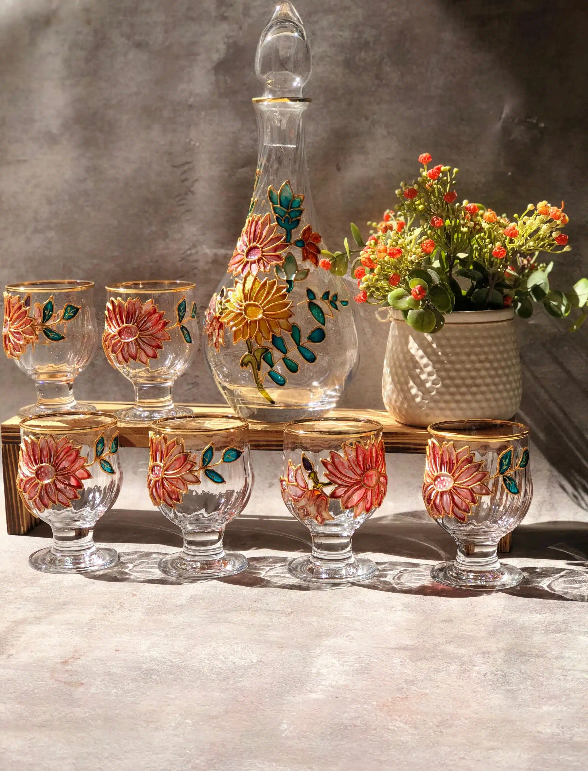 Hand painted sun flowers on amazing set