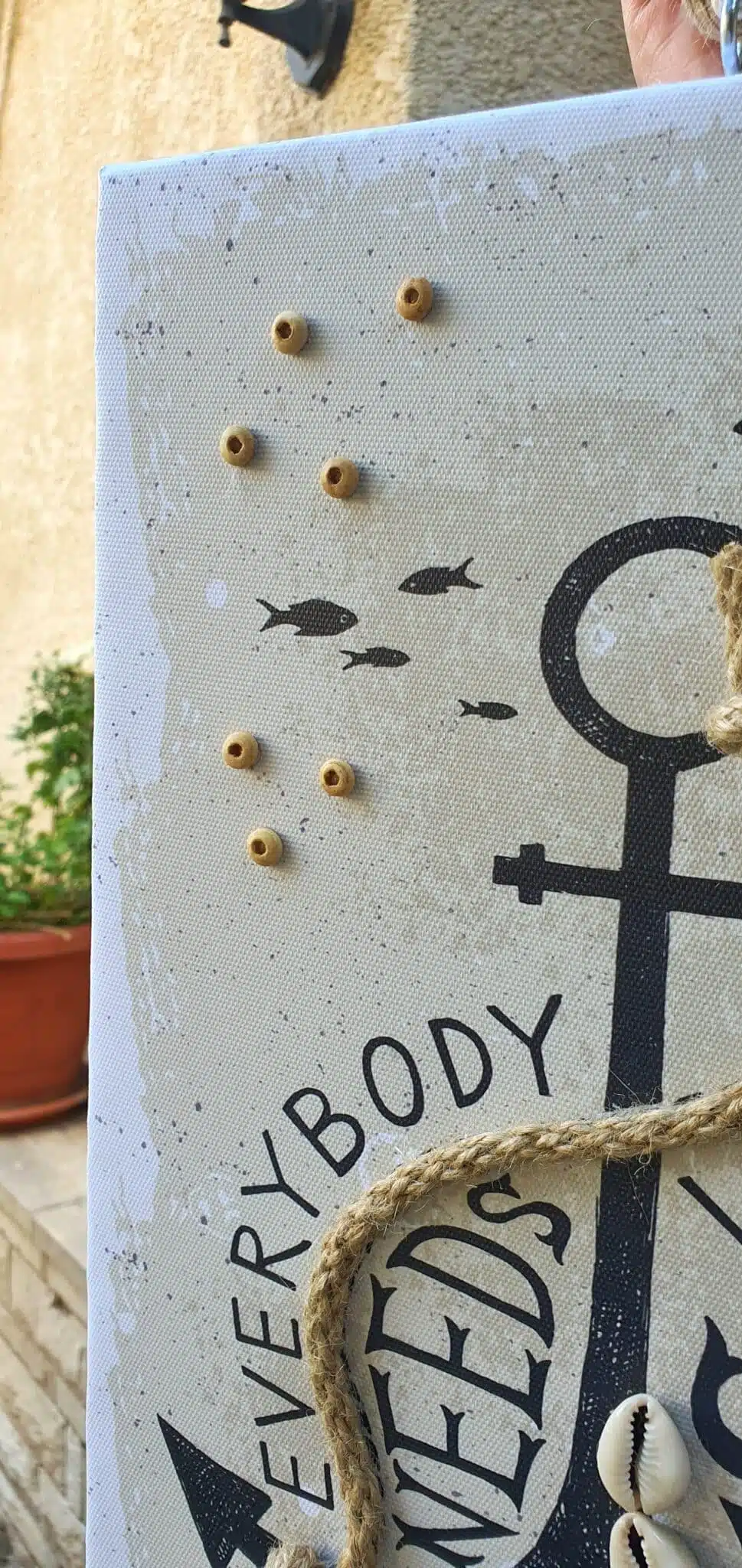 Embellishment: Shells, Sequin, Wooden Marbles & Yarn