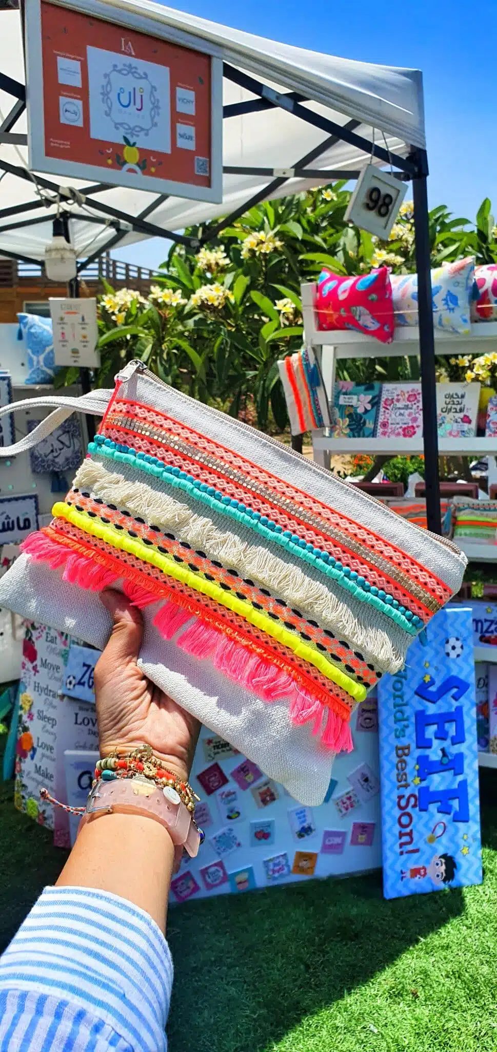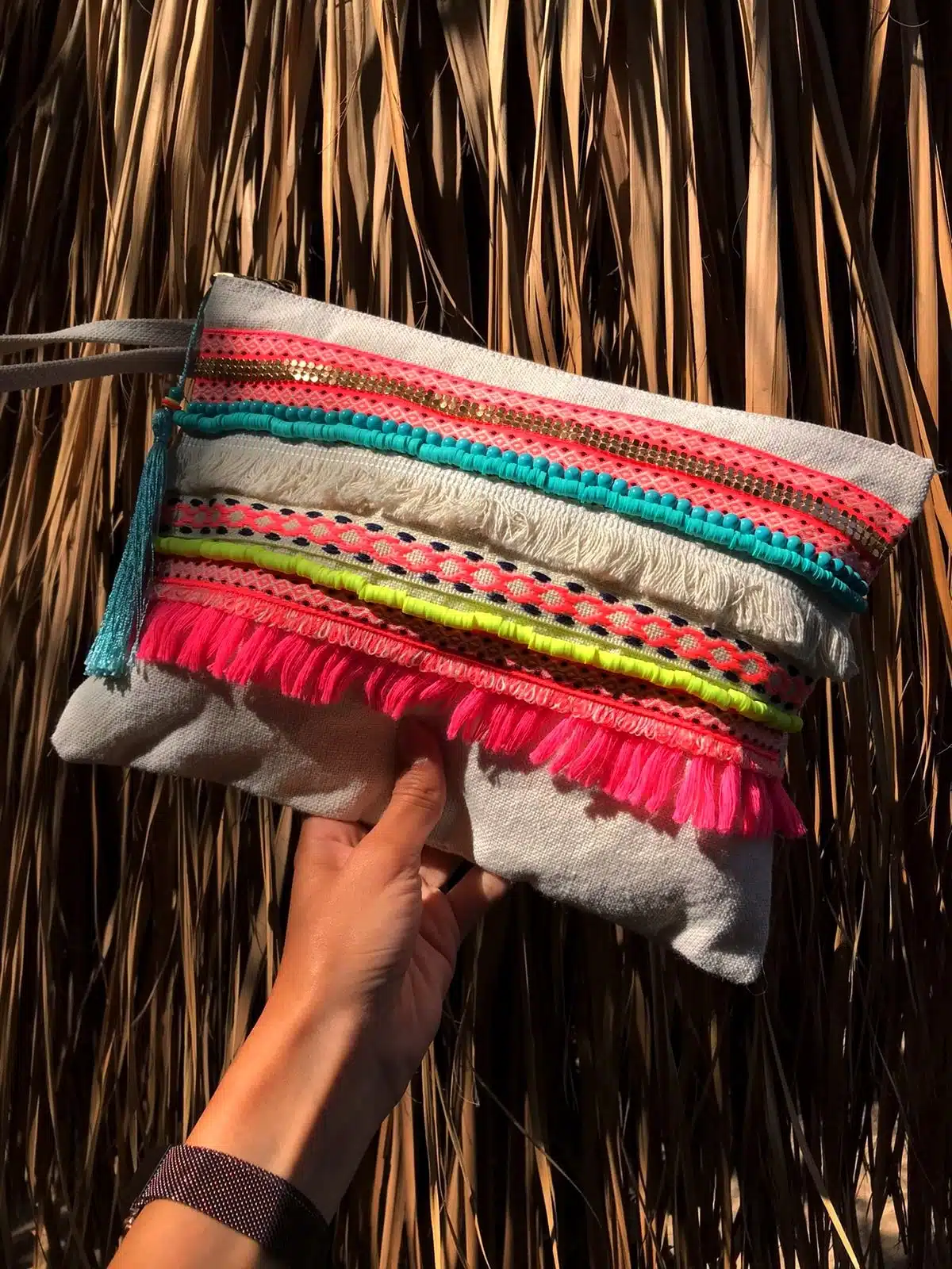 Zan Design’s Embellished Hand Clutch is the perfect addition to your summer essentials, with its fun embellishments and pop of color and convenient size will be your fav beach/outing pal.