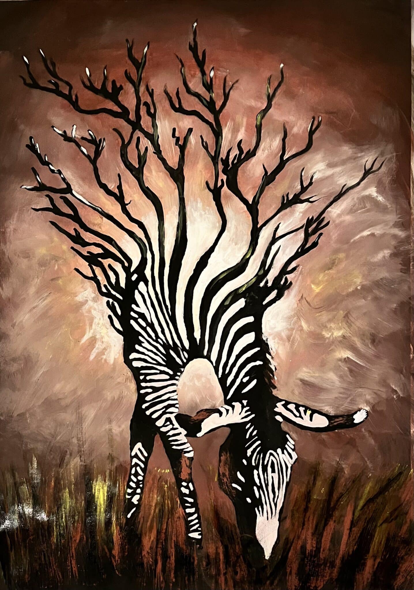 Acrylic zebra paintings. Framed gold