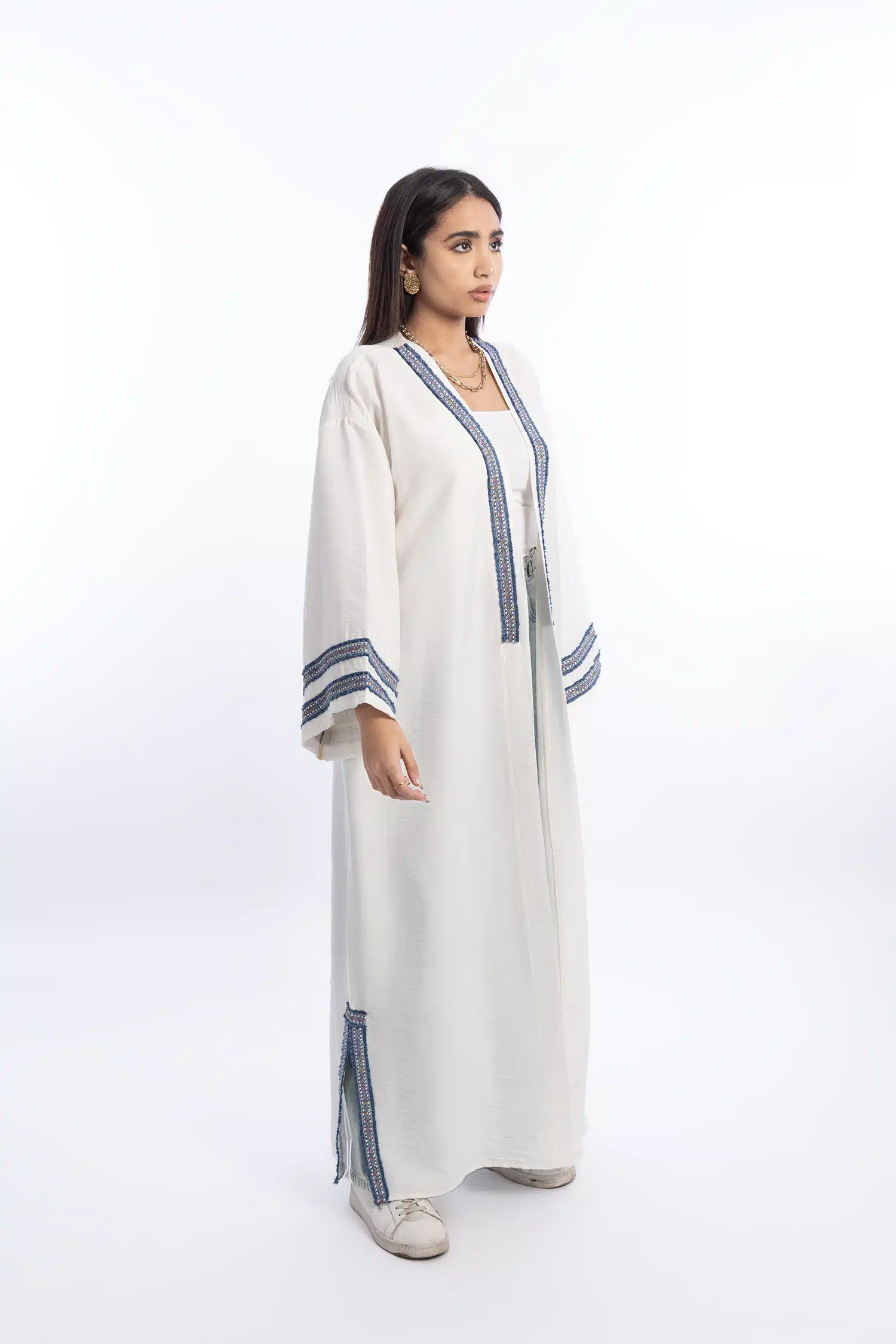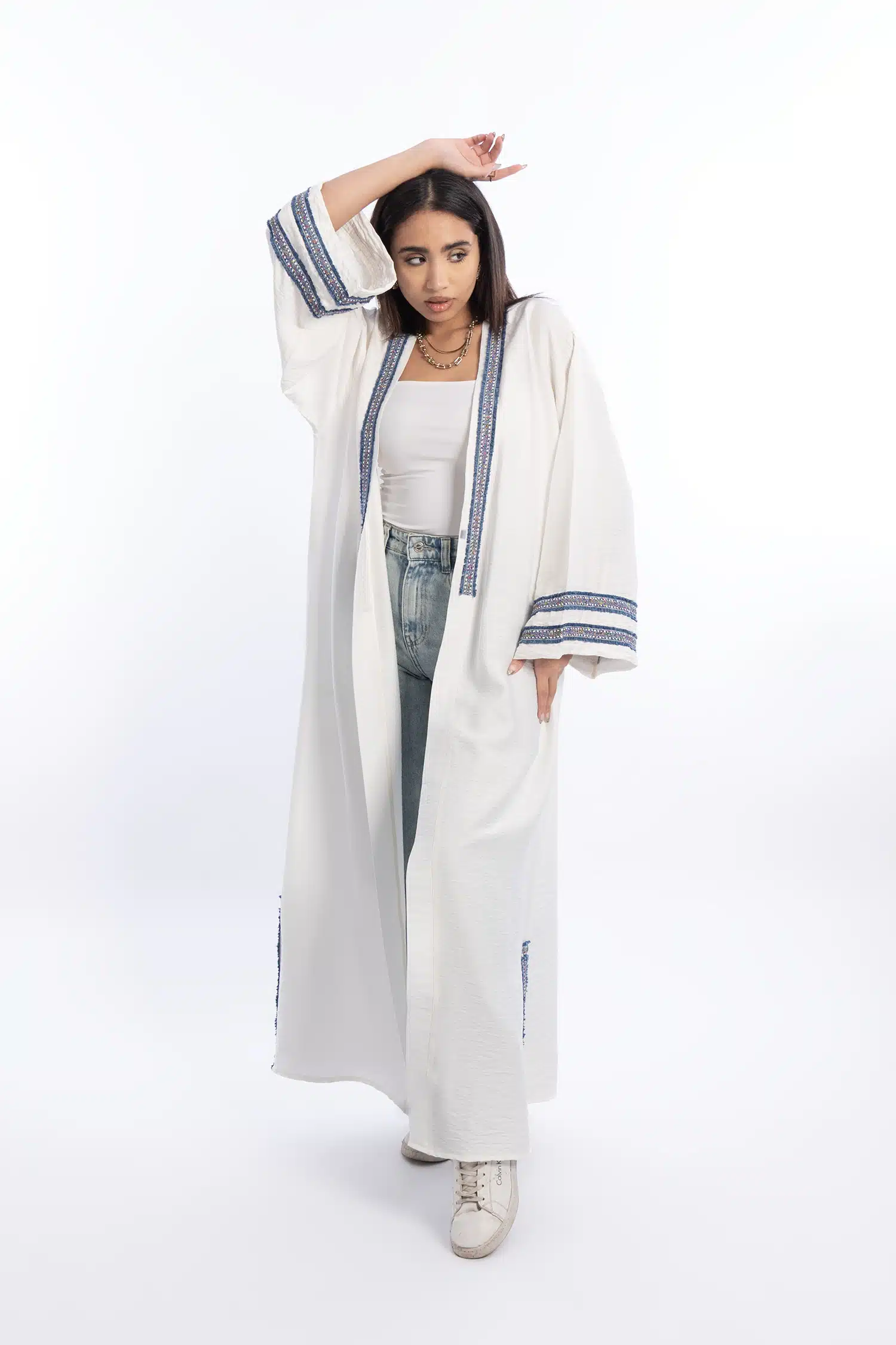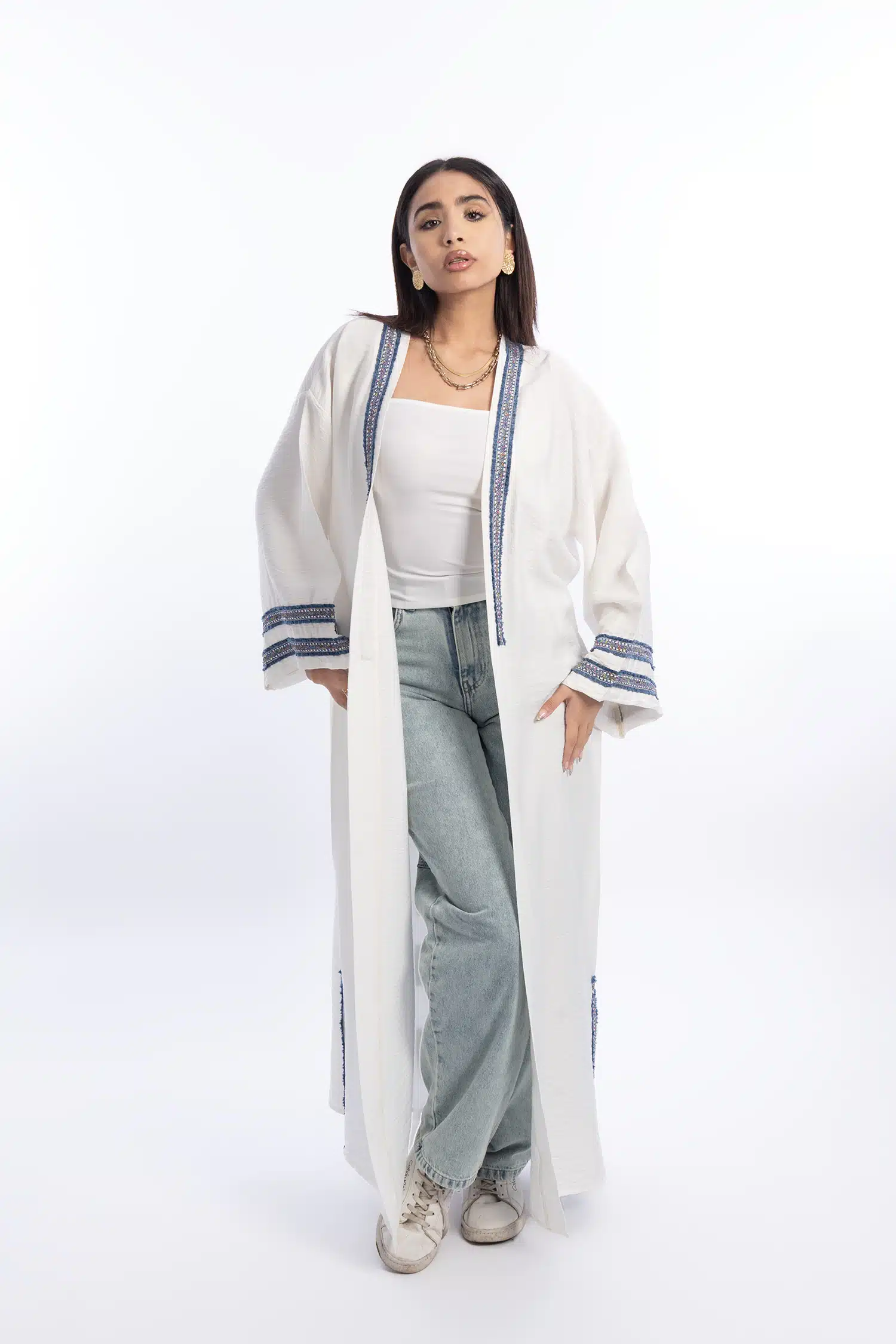 ✔ Design: Open front, wide sleeves, embroidered detailing